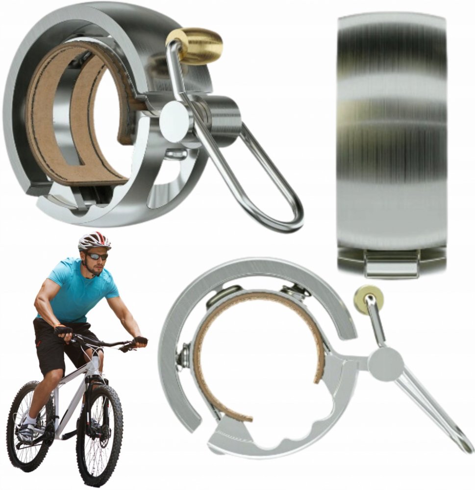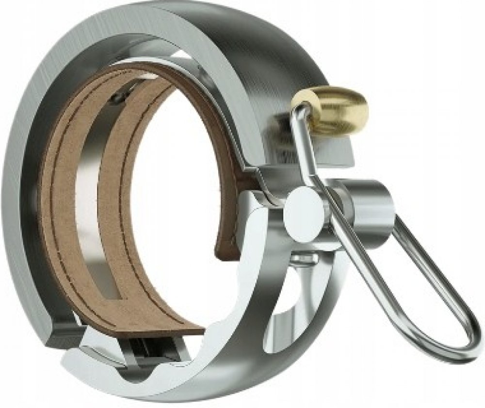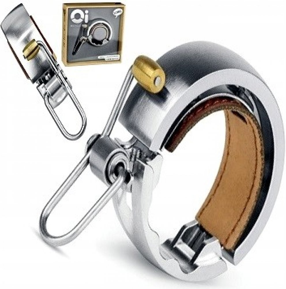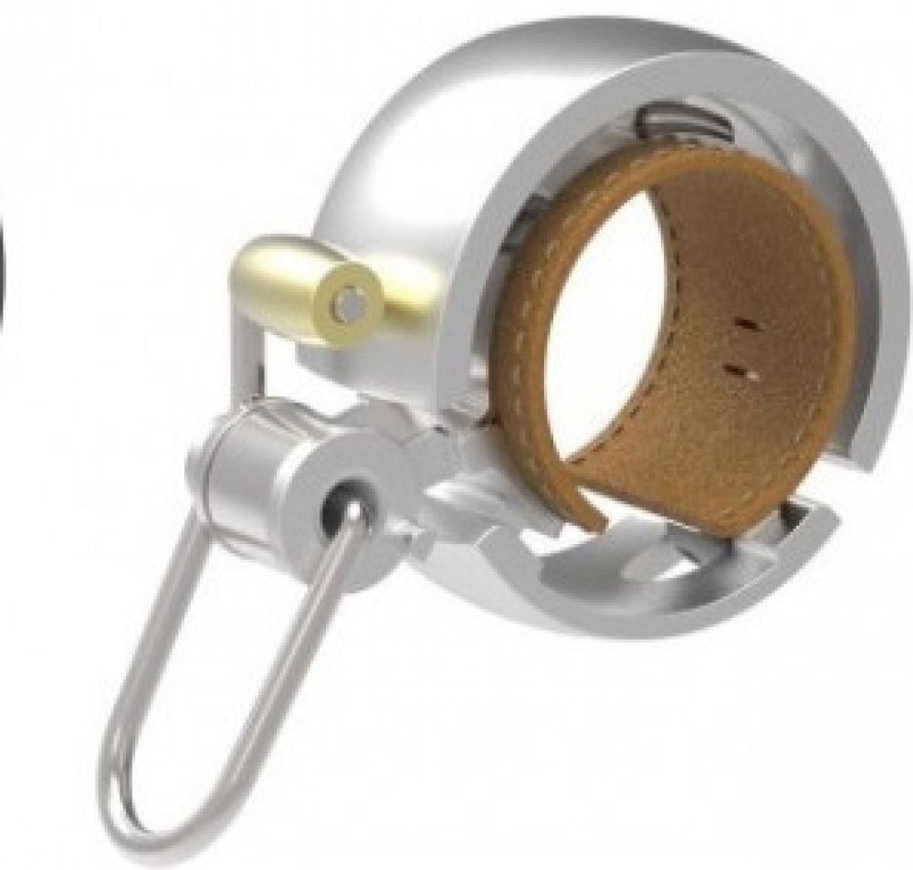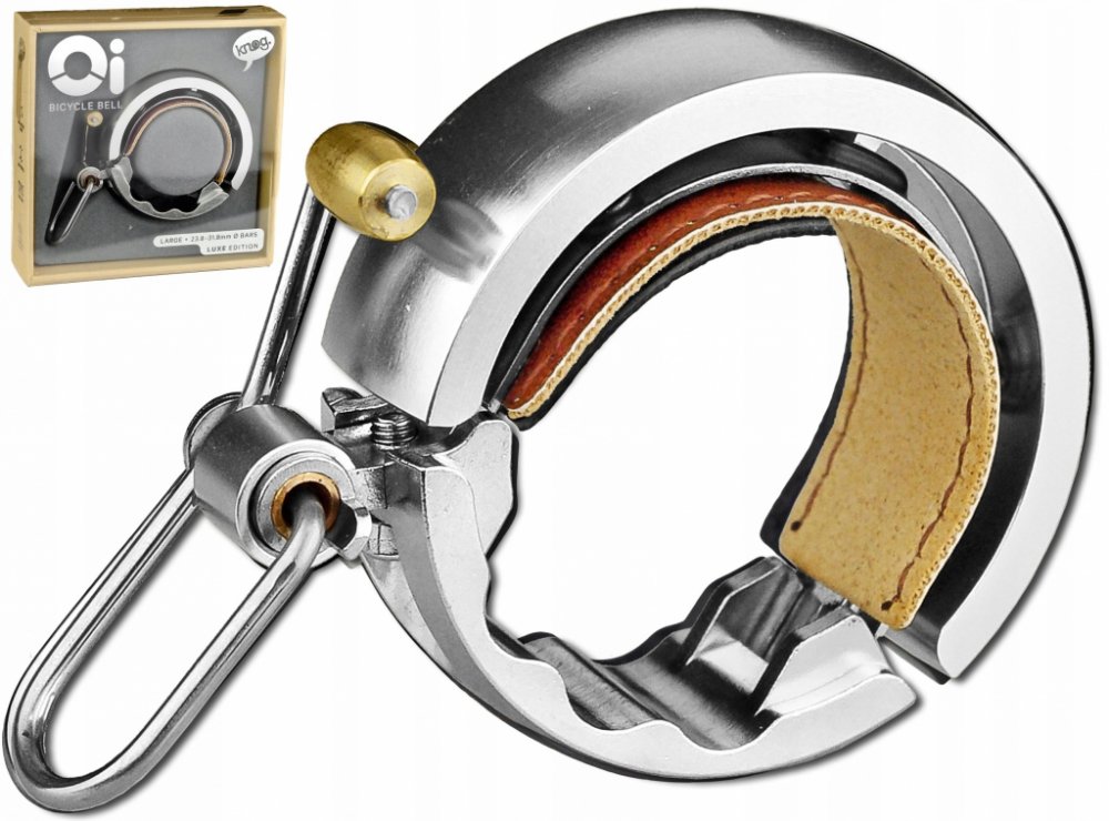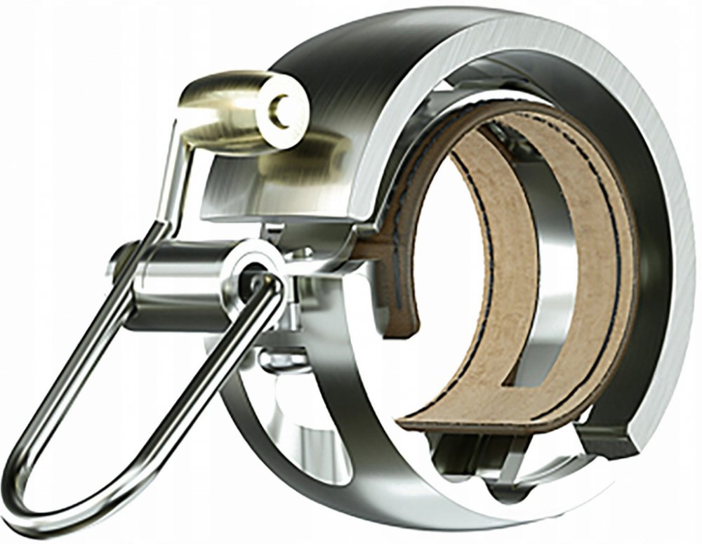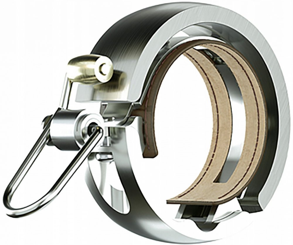 Celokovový zvonek Knog Oi LUXE, s koženou vložkou.