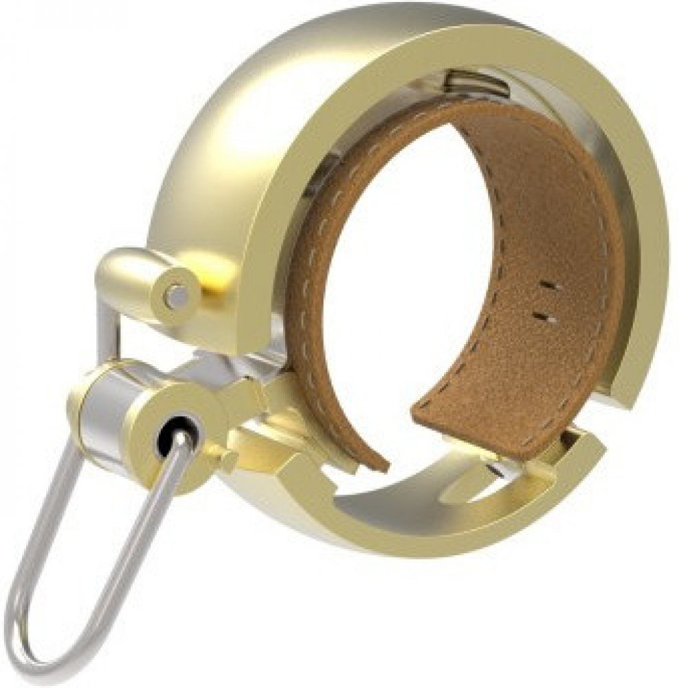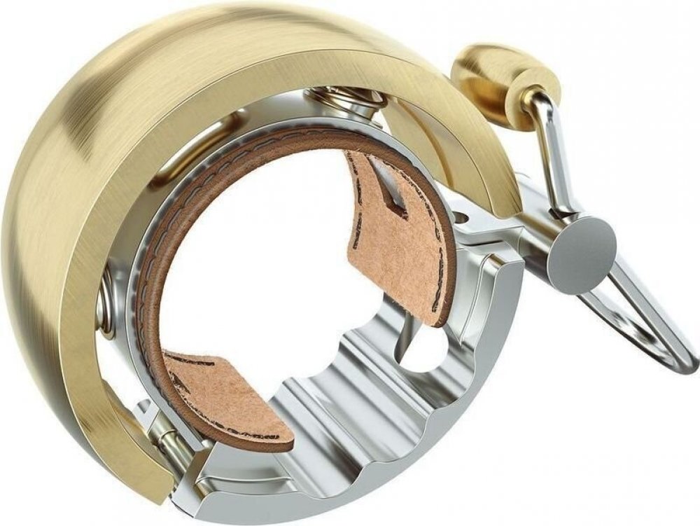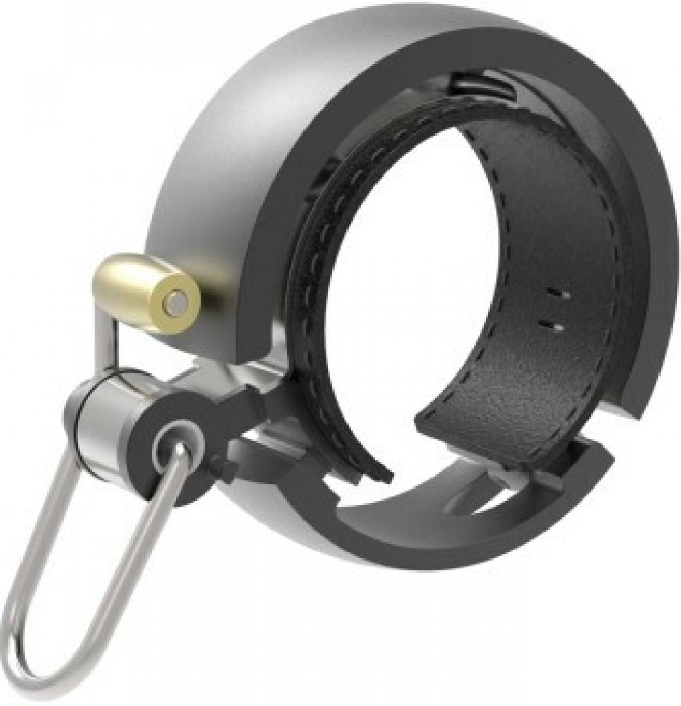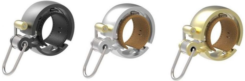 Celokovový zvonek Knog Oi LUXE, s koženou vložkou.