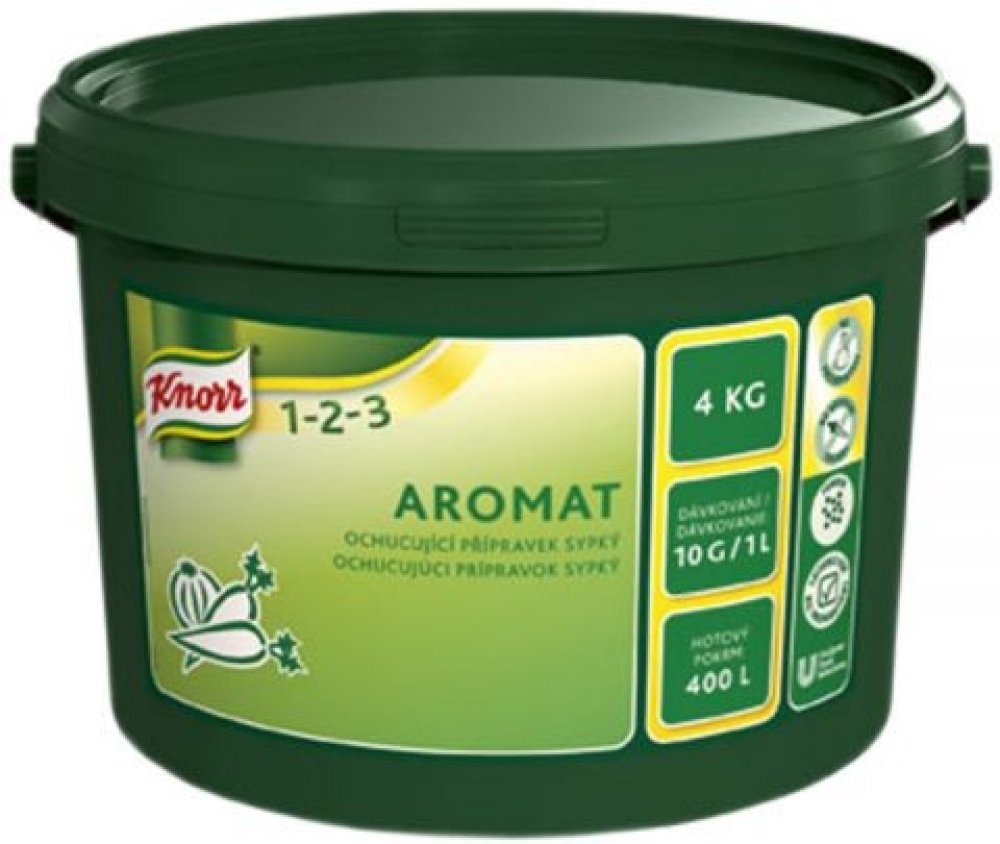 Návod k použití: Návod na přípravu:Zelenina, rýže nebo těstoviny připravované v konvektomatu:dávkování: Do 1 kg hluboce zmražené zeleniny, rýže nebo těstovin přidejte 36 g(2 vrchovaté polévkové lžíce) Aroma Mix.Příprava:- Posypejte zeleninu, rýži nebotěstoviny Aroma Mia dejte nádobu do konvektomatu (teplota 100 °C, 100% vlhkost).Rýže nebo těstoviny by měly být uvařené před tím, než je budete ochucovat AromaMix.- Podle typu zeleniny a efektivity konvektomatu bude příprava trvat 5 až 18minut.- Promíchejte několikrát během ohřívání.- Před podáváním znovu pečlivě promíchejte.Doplňkové použití:Zelenina, rýže a těstoviny připravované na pánvi:Dávkování: Do 1 kg hluboce zmražené zeleniny, rýže nebo těstovin přidejte 36 g(2 vrchovaté polévkové lžíce) Aroma Mix. Rýže nebo těstoviny by měly být uvařenépřed tím, než je budete ochucovat směsí Aroma Mix a přidávat 300 ml vody.Příprava:- Promíchejte několikrát během ohřívání.- Před podáváním znovu pečlivě promíchejte.