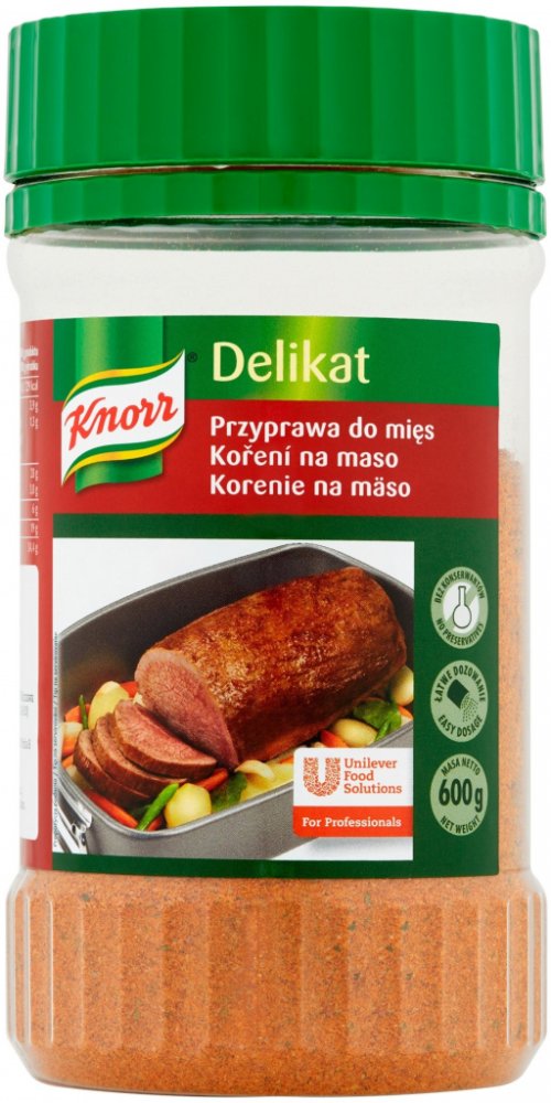 Koření na maso Knorr zdůrazňuje chuť masových pokrmů a dodává jim chutnou, heřmánekovitou barvu. Je dokonalým doplňkem každého masového pokrmu a je jistotou úspěšného oběda.