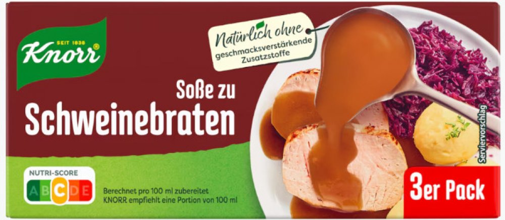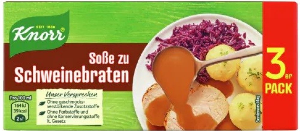 Omáčka z vepřové pečeně Knorr v balení po 3 kusech - lahodná tmavá omáčka má obzvlášť výraznou chuť a obohatí celou řadu pokrmů, včetně bezmasých těstovin a knedlíků....