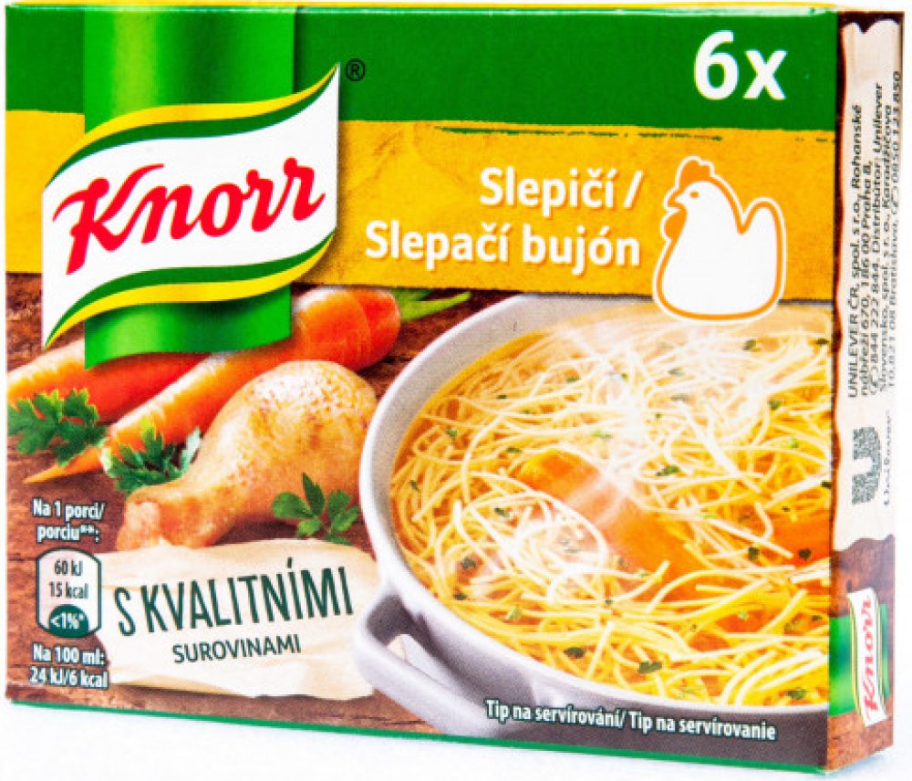Cena se může v jednotlivých regionech lišit. -- Vyzkoušejte plnou chuť Knorr Slepičího bujónu, který se perfektně hodí pro přípravu kuřecích polévek, omáček či šťáv k masu.