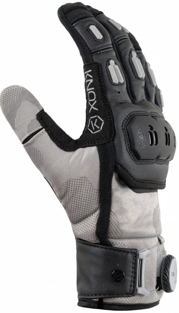 Vylepšený vzhled rukavic zahrnuje nové lisované plastové ochranné prvky na prstech pro větší odolnost proti oděru a zcela nový plastový plovoucí chránič Knox Micro-Lock na hřbetu ruky. Stylový tmavý reflexní potisk chrániče je během dne matný, ale je reflexní.