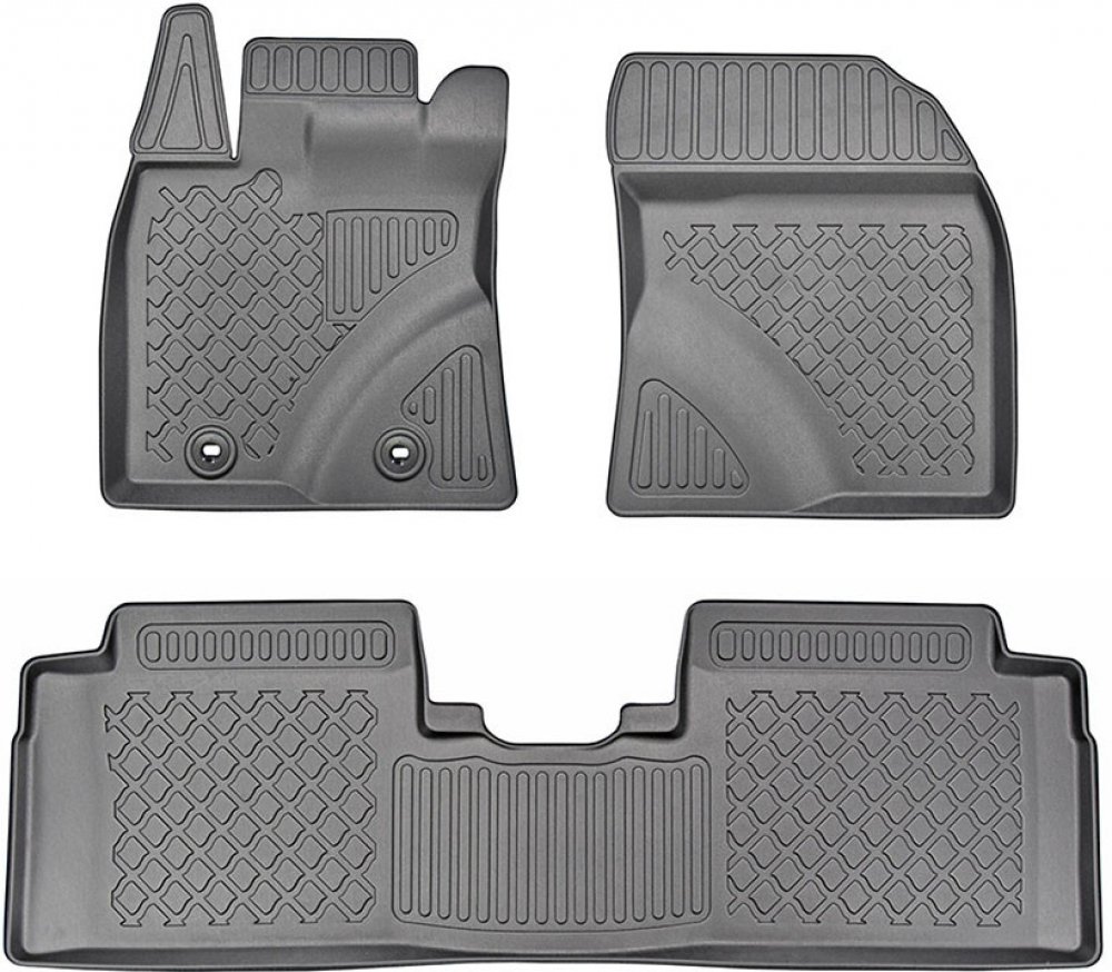 Přesně pasující autokoberce z pevnějšího a velmi odolného termoplastického materiálu s příměsí gumy využijete v jakémkoli ročním období, obzvláště pak od podzimu do jara. Velkou výhodou oproti čistě gumovým kobercům do auta je zvýšený 3 cm okraj, díky kterému i větší množství nečistot nebo vody ze sněhu neznečistí interiér vašeho vozu.
