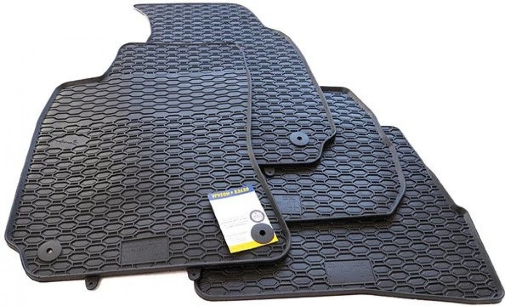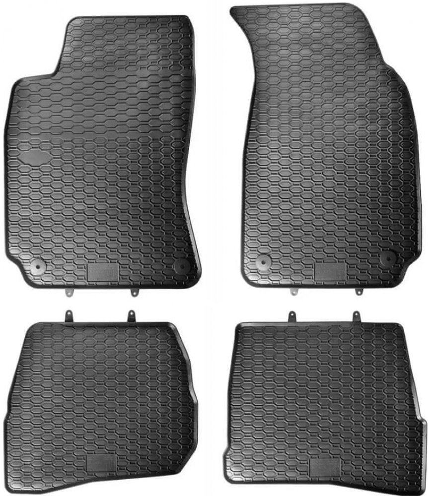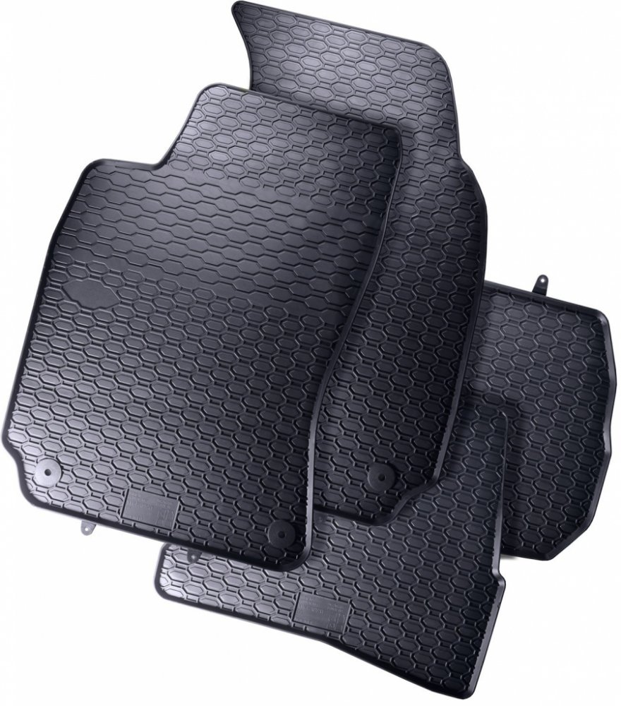 Robustní gumové autokoberce pro vůz VW Passat B5. Mají dezén ve tvaru pláství, díky kterému nedochází k přelévání vody nebo tajícího sněhu po kobercích. Okraj autokoberců je přibližně 1 cm vysoký.