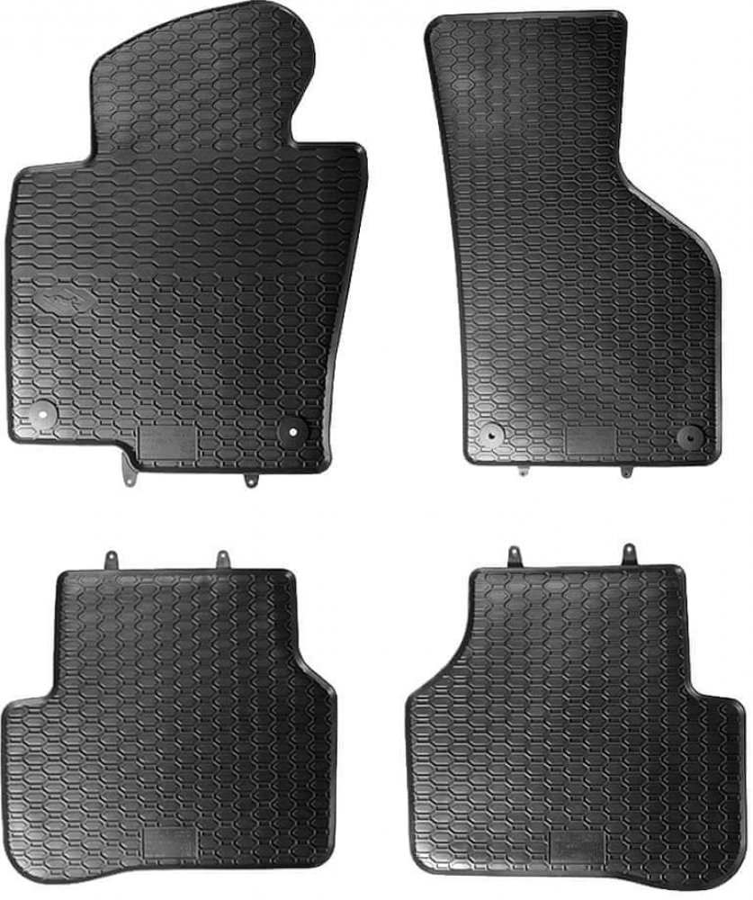 Robustní gumové autokoberce pro vůz VW Passat B7. Mají dezén ve tvaru pláství, díky kterému nedochází k přelévání vody nebo tajícího sněhu po kobercích. Okraj autokoberců je přibližně 1 cm vysoký. Autokoberce od výrobce GEYER & HOSAJA jsou vyráběné na míru a přesně pasují do interiéru konkrétního vozidla (VW Passat B7). V případě, že je vůz z výroby opatřen trny v podlaze pro použití originálních fixací, pak jsou fixace součástí předních autokoberců. Díky speciálnímu uchycení v sobě autokoberce namají díry po ramínkách, kromě fixací jsou tak autokoberce celistvé a voda nemá šanci proniknout skrz.Autokoberce se lisují bez použití PVC a během výroby se pravidelně kontrolují na přítomnost dalších toxických a škodlivých látek. Výrobek je držitelem certifikátu ID 0000046281 zkušebního institutu T'ÜV Rheinland. Certifikát zaručuje, že výroba je pravidelně kontrolována, a že výrobek splňuje veškeré nároky na bezpečnost při použití v automobilu. Pokud si nejste jisti s výběrem gumového autokoberce a potřebujete poradit, čím se právě Geyer & Hosaja liší od jiných výrobců, připravili jsme přehledné srovnání různých značek. V článku napravo jsou podrobně popsané rozdíly mezi jednotlivými výrobci a produkty. Zmiňujeme veškeré jejich vlastnosti, klady a zápory i doporučení podle toho, jakým způsobem Vaše auto využíváte.
