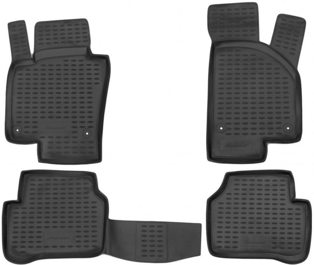 Doprodej,výroba Rusko, pokud není na našem či externím skladu nebude. Gumové autokoberce Novline pro vůz Volkswagen Passat B6 mají zvýšený okraj (3cm) po celém obvodu a spolehlivě zabraňují pronikání nečistot do interiéru automobilu.Zvýšený okraj ocení řidiči především v deštivém podzimním počasí. V zimě gumové autokoberce zadržují z bot odtávající sníh a na jaře během oblevy chrání původní podlahu vozu před blátem. Speciálně navržený protiskluzový povrch zaručuje pohodlí a komfort při řízení vozu. Autokoberce Novline mají moderní design a nejpřesnější střih ze všech značek autokoberců v našem sortimentu. Dokonale pasují do konkrétního modelu auta. Navíc součástí každé sady autokoberců jsou originální fixace, kterými jednotlivý výrobci automobilů zpravidla osazují podlahu u řidiče a spolujezdce.Díky speciální technologii výroby z inovativních polymerových materiálů jsou velmi odolné vůči opotřebení a snadné na údržbu. Zachovávají si svoji elastičnost v rozmezí teplot -50°C až +50°C a jsou odolné vůči UV záření. Autokoberce neblednou účinkem UV záření. Dokonale přesný střih a zvýšený okraj (3cm). To jsou vlastnosti, díky kterým autokoberce Novline dokonale chrání interiér auta.Většina sad autokoberců obsahuje tzv. cross-piece, což je koberec přes středový tunel mezi zadními sedačkami (viz. fotogalerie). Cross-piece je zpravidla součástí zadního levého autokoberce a pravým se pouze překryje. Tento způsob upevnění maximálně ulehčuje manipulaci se zadními autokoberci včetně jejich vyklepávání.Dále téměř všechny levé přední autokoberce Novline mají integrovaný kryt podběhu. Ten chrání čalounění podběhu před nečistotami v případě, že si řidič během jízdy na podběh odkládá nohu. Dokonale přesný tvar a zvýšený okraj. Maximálně chrání interiér auta. Nejlepší autokoberce v našem sortimentu.