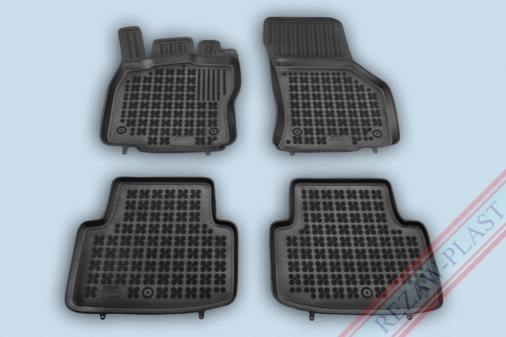 Střih autokoberců přesně odpovídá interiéru vozu (Volkswagen Passat B8).Autokoberce REZAW-PLAST jsou vyráběny ze syntetického kaučuku a jsou odolné vůči opotřebení a snadné na údržbu.