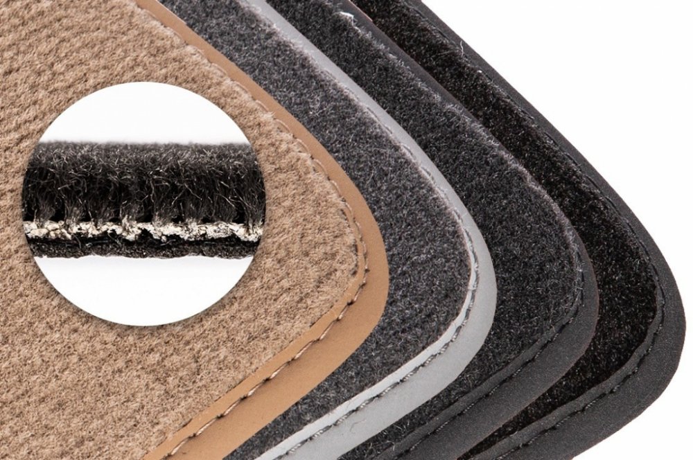 Autokoberce Elegant lze obšít Vámi zvoleným materiálem, a to buď přízí, lemovkou nebo koženkou. Obšití lemovkou a přízí je již standardně započítáno v ceně produktu a lze u nich volit různé barevné provedení. U nejkvalitnějšího typu obšítí – koženky můžete navíc dle libosti kombinovat barvy koženky s různými barvami jejího prošití a vytvořit si tak opravdu jedinečné koberečky s luxusním vzhledem do Vašeho vozu.