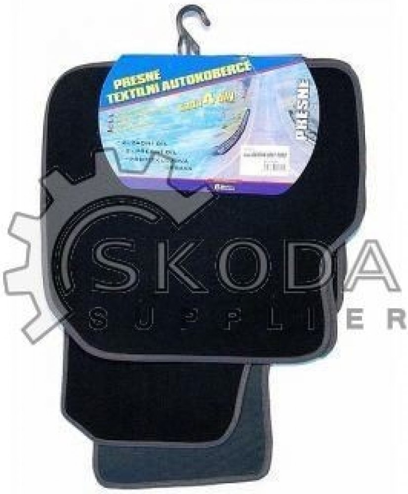 Přesné textilní autokoberce pro Škoda Octavia I., rok výroby 1997-2003. Sada 4 kusy (2x přední, 2x zadní díl). Provedení černé s šedým lemem a šedým zesílením koberce řidiče pod pedály.