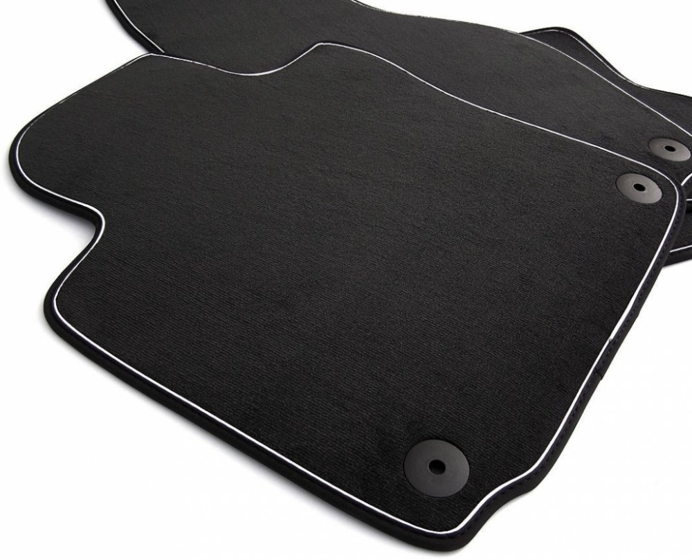 Přesné luxusní textilní auto koberce SPORT LINE obšity bílou koženkou vyráběné na zakázku specializovanou českou firmou.