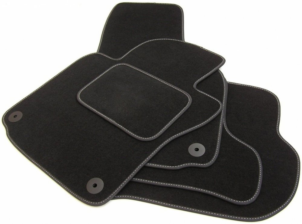 Poznámka: tvar koberců na fotkách neodpovídá skutečnosti, vybrali jsme jeden typ koberců, který používáme pro všechny vozy (tvar koberců se liší podle modelu vozu, proto je tvar koberců ilustrační). Obšití a materiál fotkám odpovídá, na detailech fotky lze vidět vzhled materiálu a barevný odstín nití.