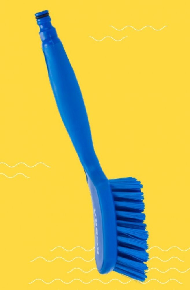 Tvrdý kartáč s protiskluzovou rukojetí a s průtokem vody: