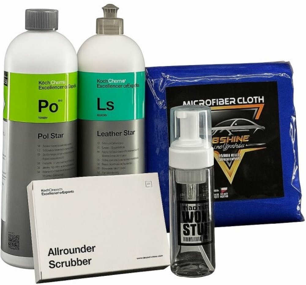 Tato sada Koch Chemie je ideálním řešením pro kompletní čištění a ošetření koženého interiéru vozu. Kombinuje účinný čistič Pol Star pro bezpečné odstranění nečistot a prémiový kondicionér Leather Star, který kůži dodá výživu, pružnost a přirozený matný vzhled.