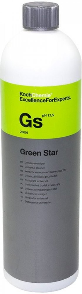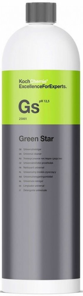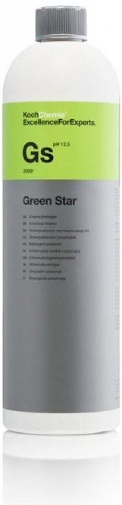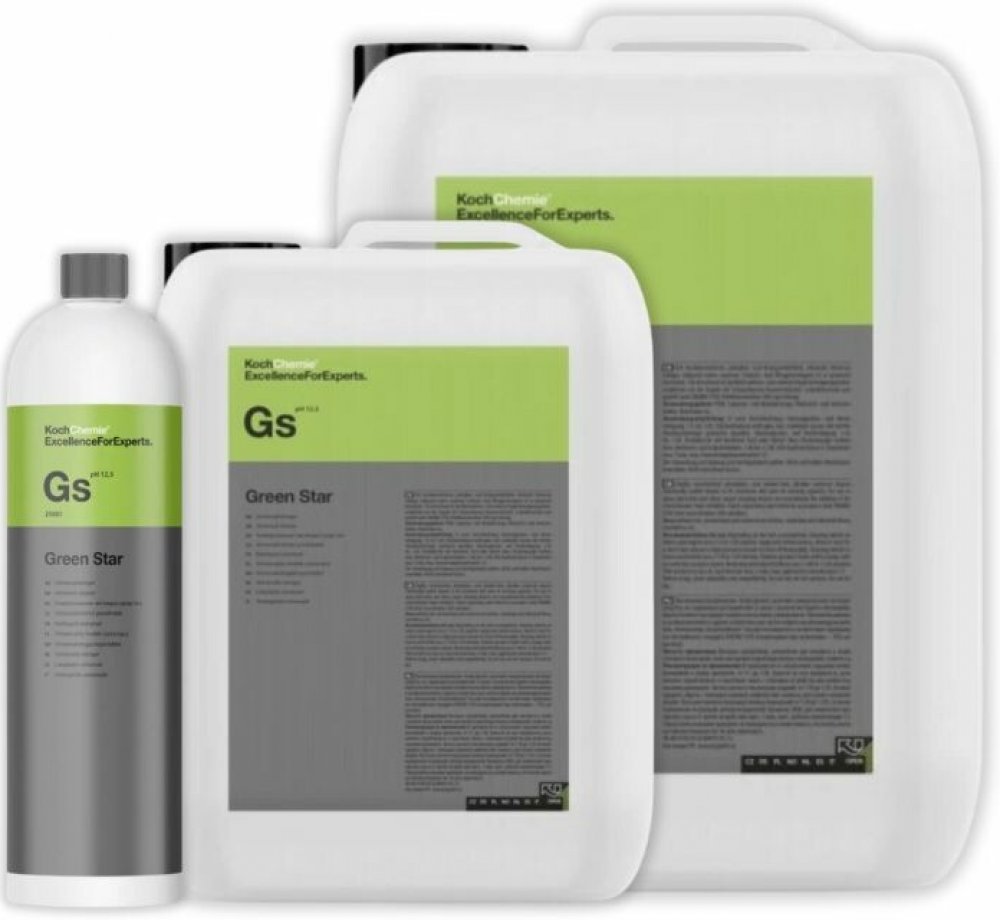 Koch Chemie GS Green Star je vysoce koncentrovaný, univerzální čistič, který si poradí s nečistotami téměř na každém povrchu. Díky své všestrannosti je nepostradatelným pomocníkem při detailingu vozidla, ale iv domácnosti. V tomto článku se dozvíte, jak správně používat tento produkt a dosáhnout tak dokonale čistých povrchů. zásaditý univerzální čistící prostředek bez obsahu fosfátů a rozpouštědel Díky jeho vysoké schopnosti vázat nečistoty a oleje lze univerzálně používat k čištění dílenských podlah a průmyslové čištění, čištění interiéru a exteriéru osobních a nákladních automobilů, jakož i na mytí motorů. snášenlivost materiálů proti citlivým komponentům, jako je např. Eloxovaný hliník Při použití v postřikovacích tepovacích přístrojích a jiných čisticích přístrojích na koberce doporučujeme přidávat prostředek pro neutralizaci nežádoucí pěny Kocentschäumer. optimální i pro biologickou úpravnu užitkové vody. souladu s normou ÖNORM 5105 (testovaná koncentrace 10% roztok). Třída A ve shodě s VDA Doba působení max. 5 min., Max.