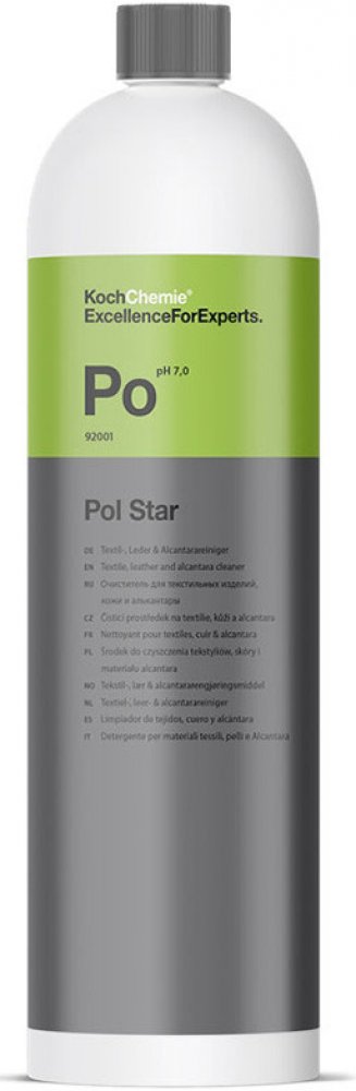 Koch Chemie Pol Star je špičkový čisticí prostředek, který se specializuje na péči o textilie, kůži a Alcantaru. Tento neutrální čistič je obohacen o konzervační látky, které nejenže důkladně odstraní nečistoty, ale také chrání povrch před dalším znečištěním. Díky své unikátní schopnosti proniknout hluboko do vláken, Pol Star účinně narušuje a odstraňuje nečistoty, které lze snadno vysát mokro-suchým vysavačem nebo setřít vlhkou utěrkou. Jeho složení zajišťuje, že po čištění nezůstanou žádné nevzhledné mapy, a zároveň obnovuje původní impregnaci materiálu.