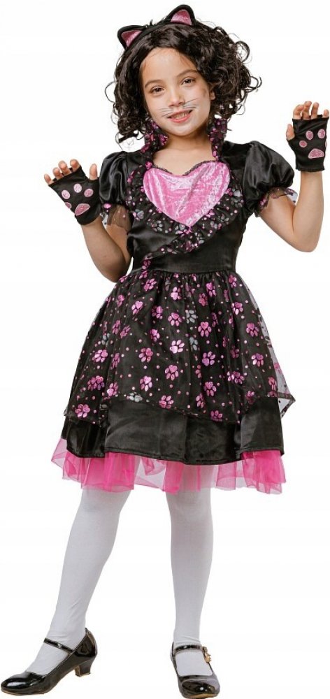 - Kostým pro děti Kočička je roztomilá a plná fantazie a upoutá pozornost. Šaty v černé barvě s růžovými akcenty a zábavnými motivy tlapek nejen vypadá úžasně, ale je také pohodlná na nošení díky použití vysoce kvalitních materiálů.