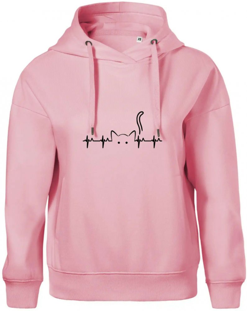 Kočka EKG Oversized mikina dámská Moon kratší + širší Růžová
