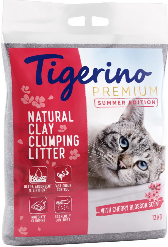 Hrudkující stelivo Tigerino Premium přesvědčí svou extrémně rychlou schopností tvořit hrudky! Díky obzvláště vysoké savosti je tato podestýlka mnohem užitkovější než běžná hrudkující podestýlka. Podestýlka je také mimořádně jemná a má velmi nízký obsah prachu. Podestýlka pro kočky Tigerino Premium je vyrobena z přírodního jílu a neobsahuje žádné chemické přísady. Šetrně a spolehlivě také váže nepříjemné pachy - voní vám i vašemu domácímu mazlíčkovi. Kočkolit Tigerino Premium - Cherry Blossom Vysoká savost Kočkolit Tigerino z přírodního jílu se vyznačuje enormní savostí. Díky tomu je jeho používání obzvláště úsporné. Rychlá tvorba hrudek Stelivo Tigerino hrudkuje okamžitě a obzvlášť silně. Utvořené hrudky lze snadno odstranit. Příjemná a jemná vůně třešňových květů Obzvláště jemný přírodní jílový granulát s extrémně vysokou výtěžností Mnohem vydatnější než běžná podestýlka díky obzvláště vysoké savosti Hrudkuje okamžitě a obzvlášť silně Extrémně nízká prašnost
