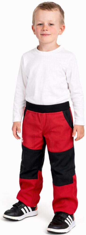 KocourMourek Kalhoty dětské softshellové jarní s bambusem červeno černé