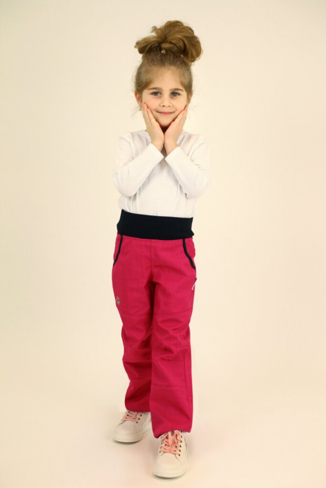 Dětské softshellové kalhoty jarní s bambusovou vložkou, růžové (fuchsiové).