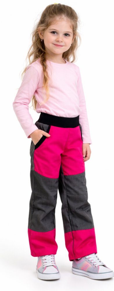 Dětské softshellové kalhoty jarní s bambusovou vložkou, růžovo-šedé.