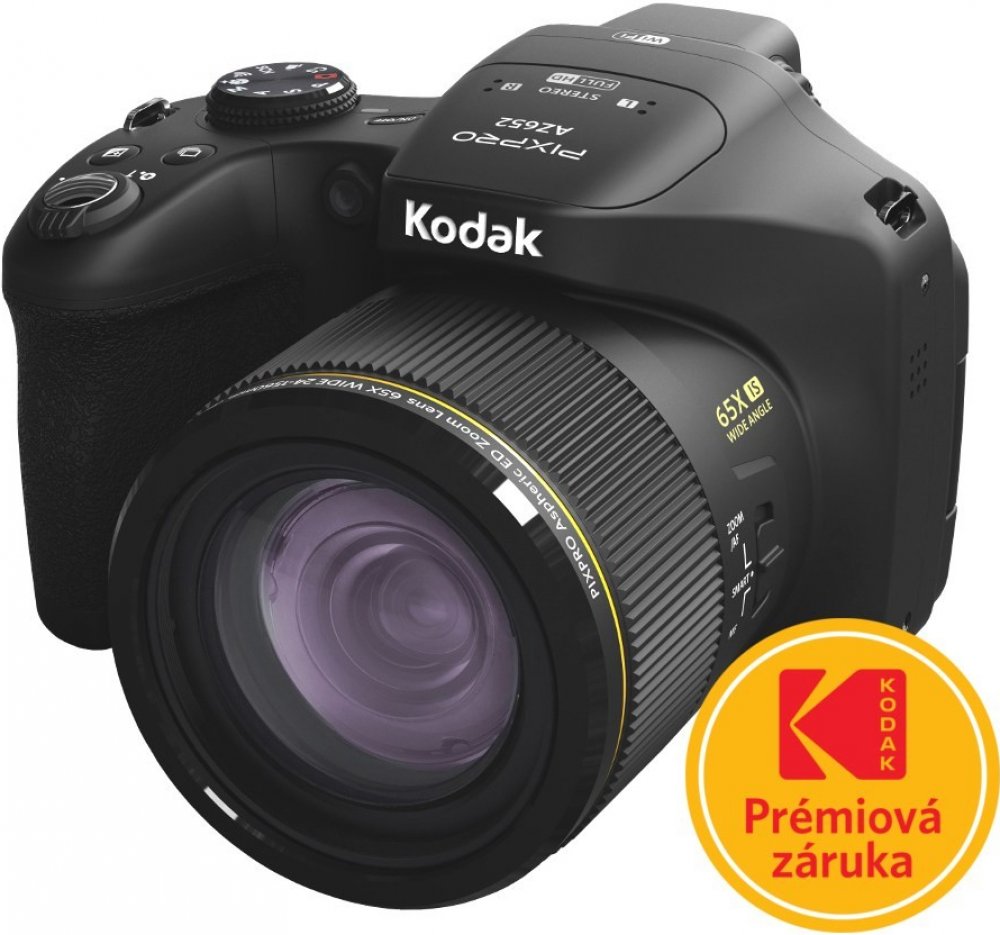 Vezměte do ruky kameru Kodak AZ652 a nechte se unést. Váš smysl pro detail uspokojí BSI CMOS senzor s rozlišením 20MPix. Díky širokoúhlému 24 mm objektivu je kompozice hračkou a výsledky si ihned prohlédnete na 3“ otočném LCD displeji.