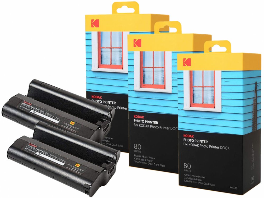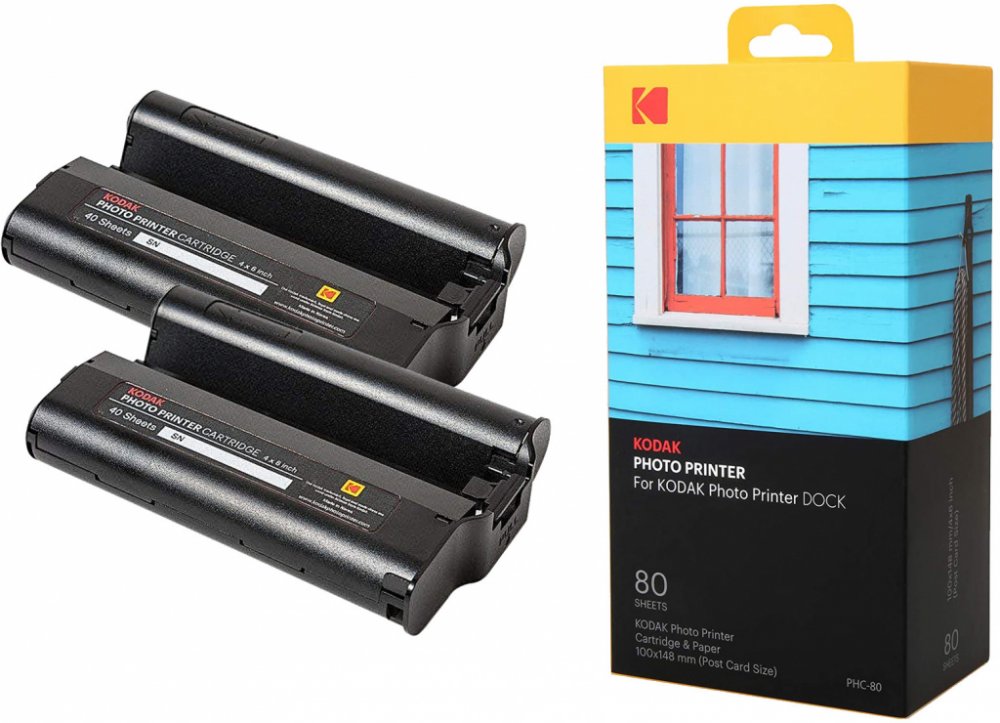 Kazeta na papír Kodak Printer dock s velikostí 4x6 palců (10x15 cm). Obsahuje 80 fotografických papírů a tiskové folie pro odolné výtisky vašich fotografií. Kodak Printer dock je jedním z produktů, který využívá tuto kazetu s technologií 4Pass, což je proces přenosu sublimační barvy, který distribuuje žluté, purpurové a azurové barvy na fotografický papír. Tato technologie poskytuje velmi vysokou fotokvalitu. Díky ochranné vrstvě jsou obrázky odolné vůči bělení, otiskům prstů a vodě a poskytuje dlouhou životnost vašim vzácným vzpomínkám. Stačí ji jednoduše zasunout do tiskárny a můžete tisknout.