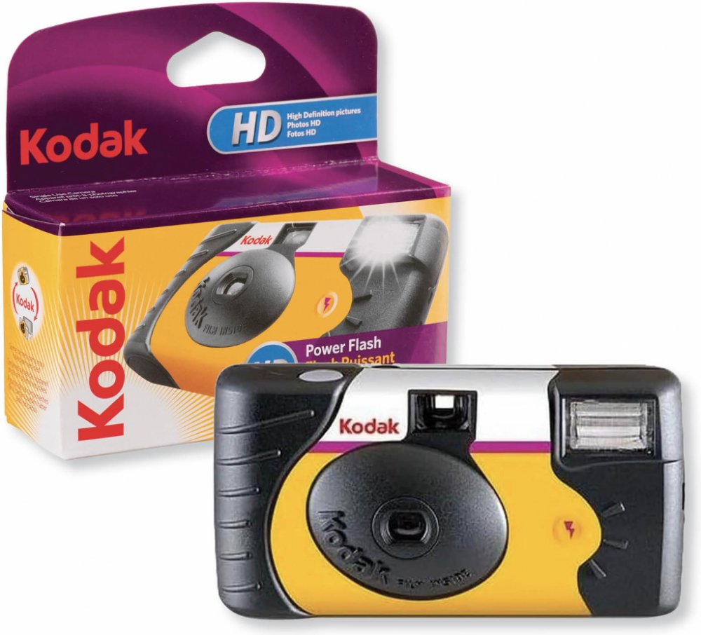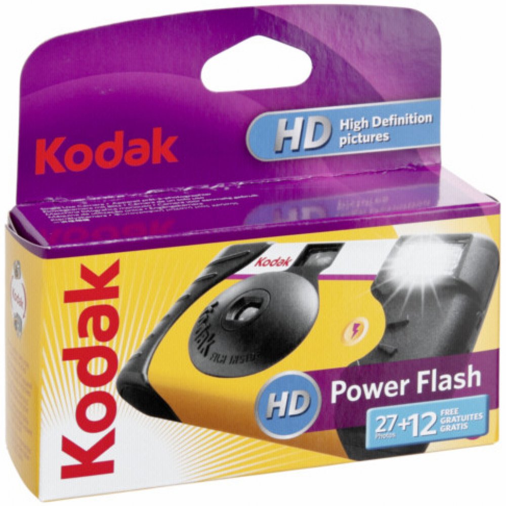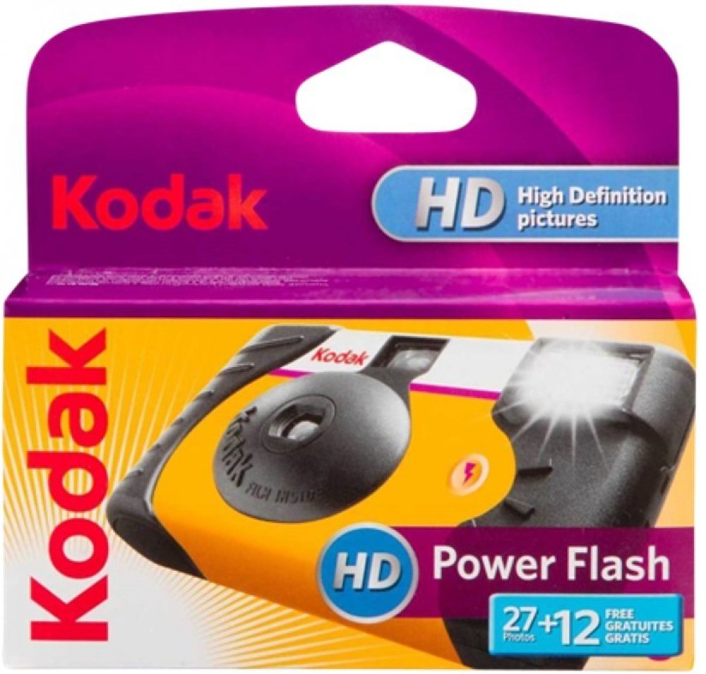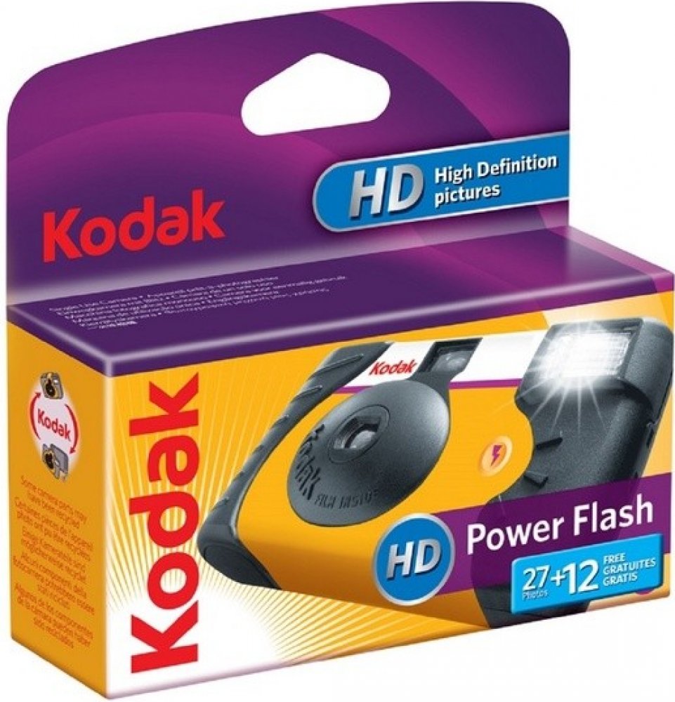Jednorázový kinofilmový fotoaparát Kodak HD POWER FLASH s vestavěným bleskem a 39 snímkovým barevným filmem Kodak ISO 800 umožňuje jednoduché focení ve vnitřních i venkovných prostorách.