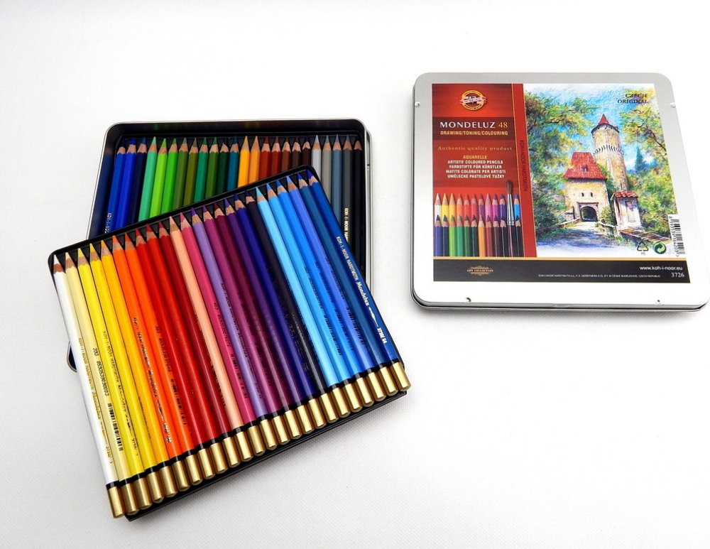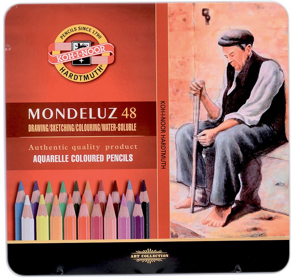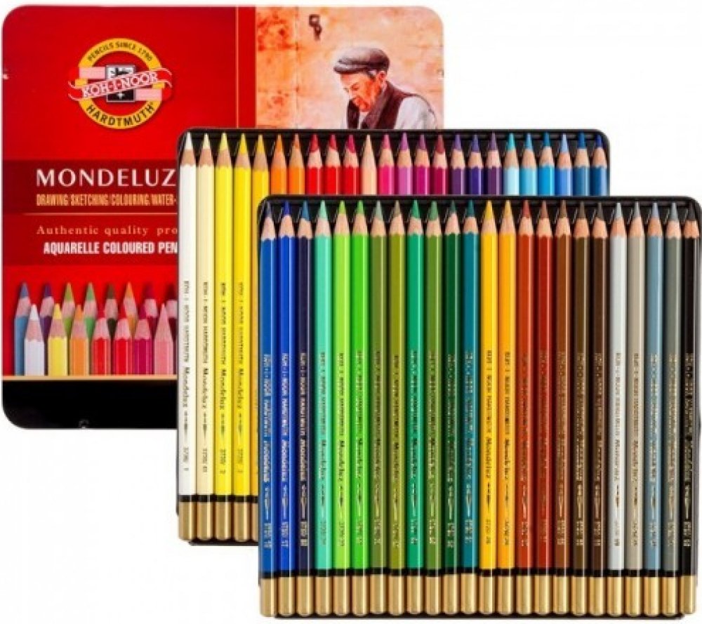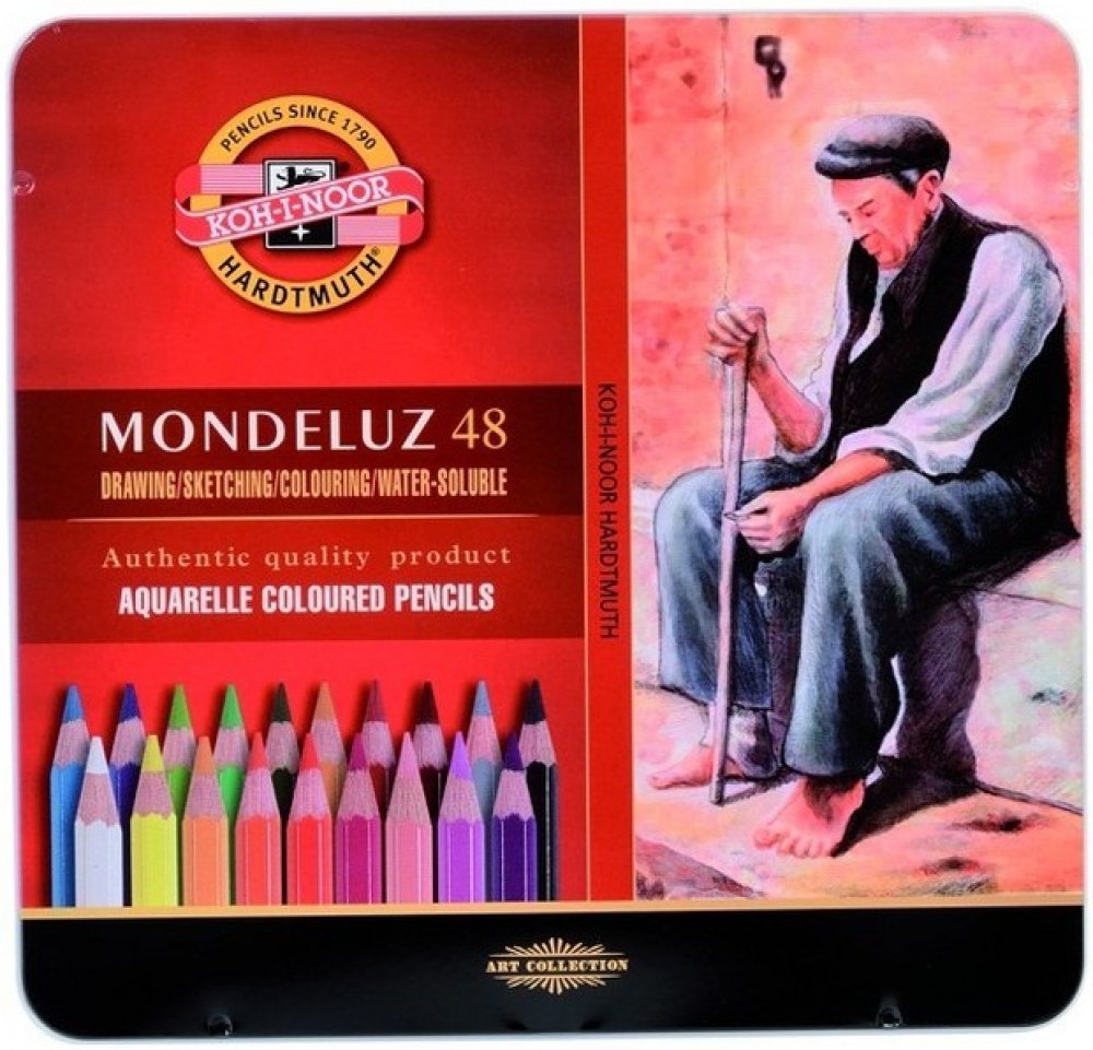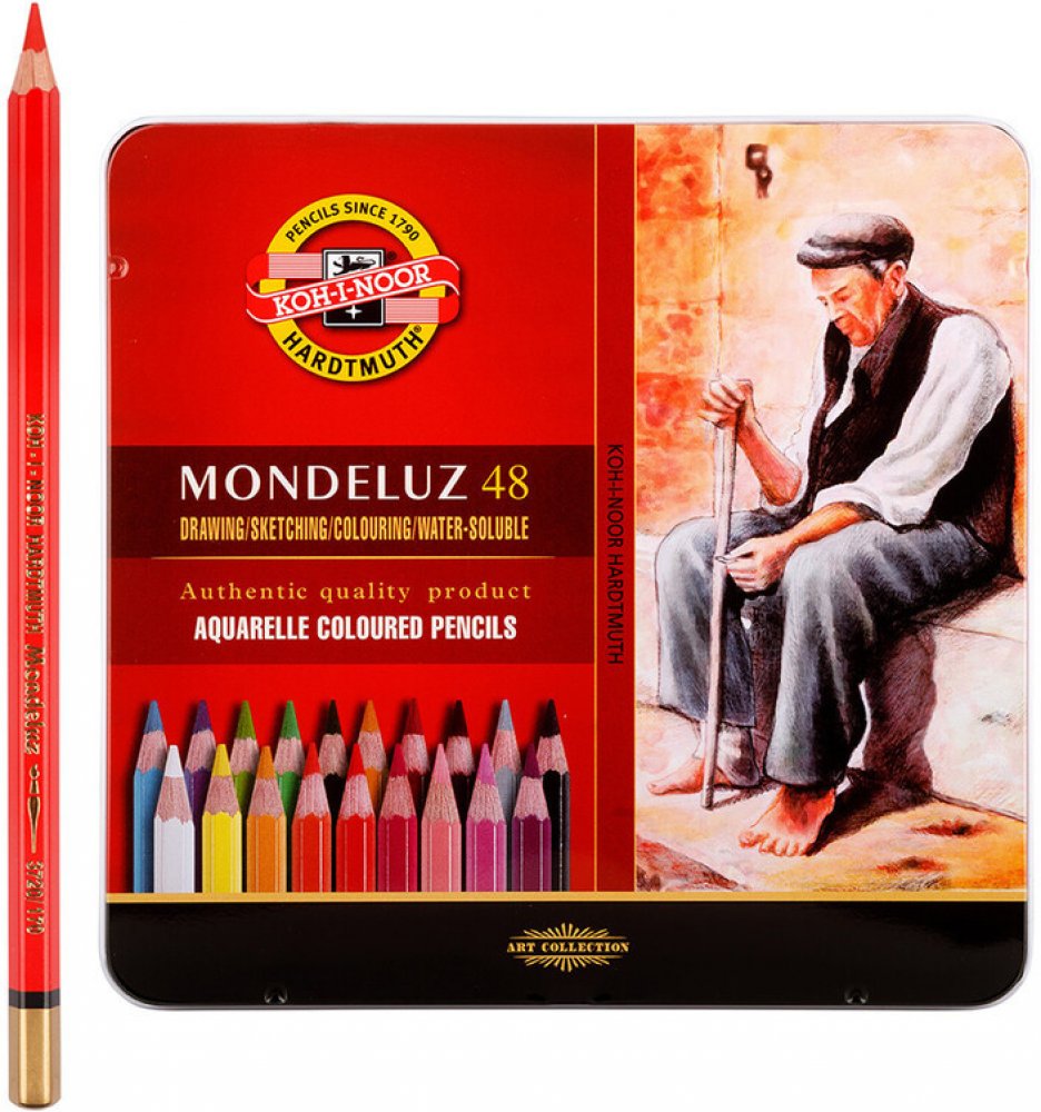 Sada 48 kusů akvarelových pastelek v plechové krabičce značky MONDELUZ od výrobce KOH-I-NOOR