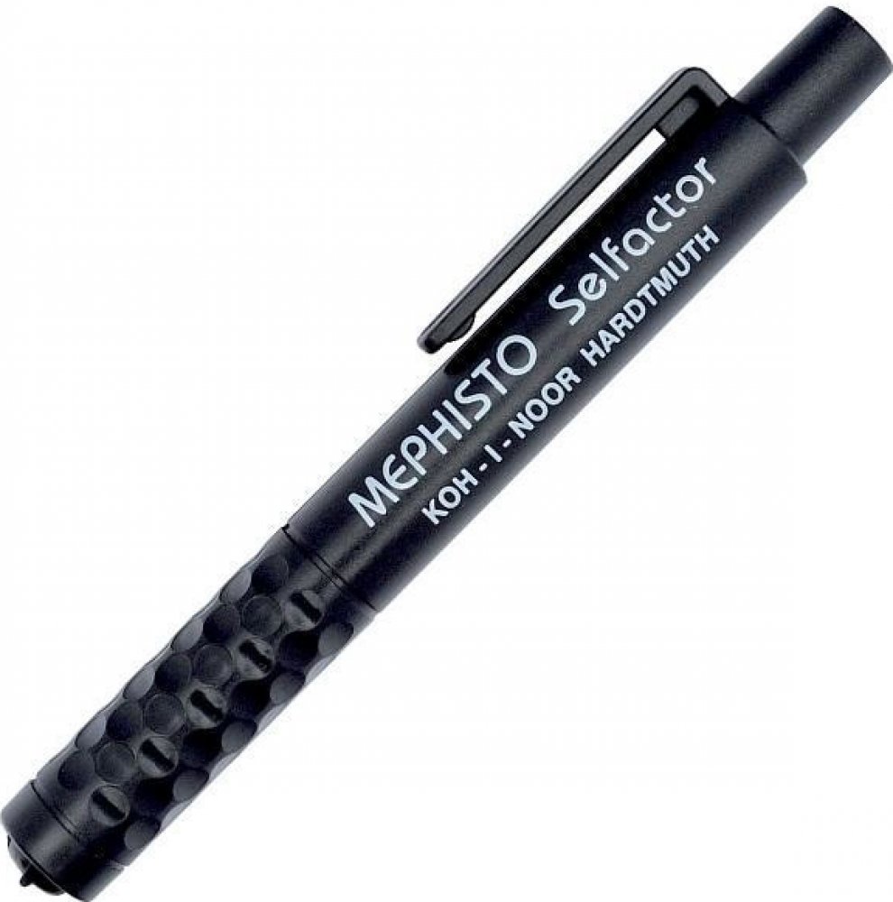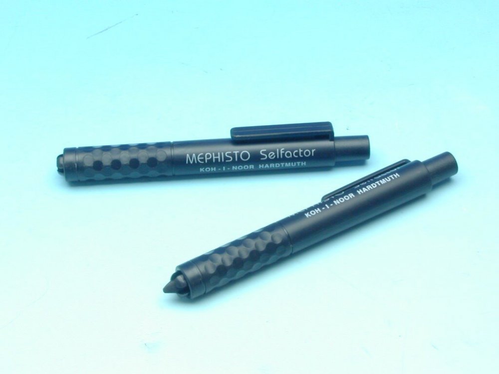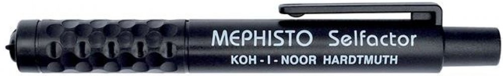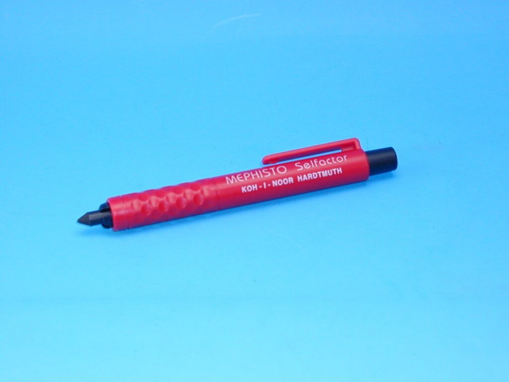 Mechanická padací tužka plastová s tuhou pr. 5,6 mm pro běžné psaní i kreslení. Stisknutim knoflíku v nakloněné poloze tužky se vlastní vahou uvolní tuha do libovolné polohy pro psaní. Tužka nemá hrotítko. Klip je součástí výlisku pláště kruhového profilu černé barvy. Skupinové balení, 100 ks tužky do kartonové krabice.