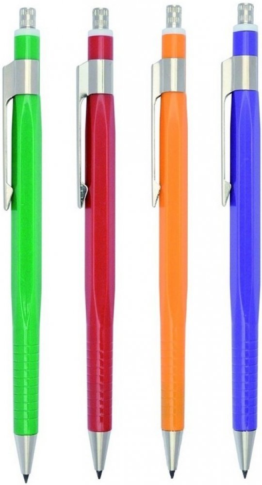 Tužka automatická v kombinaci kov-plast, je určena pro běžné psaní a kreslení tuhou průměr 2 mm, tuha se posunuje stisknutím knoflíku hrotítka v jakékoli poloze tužky, tím dojde k otevření kleštiny a vysunutí tuhy, v knoflíku je umístěno hrotítko, po odšroubování knoflíku lze hrotit tuhu, plášť tužky je plastový, šestihranný, přecházející na obou koncích v kruhový profil, díly mechaniky kovové niklované, stiskací trubka plastová, tužka má kovový klip, assort barev.