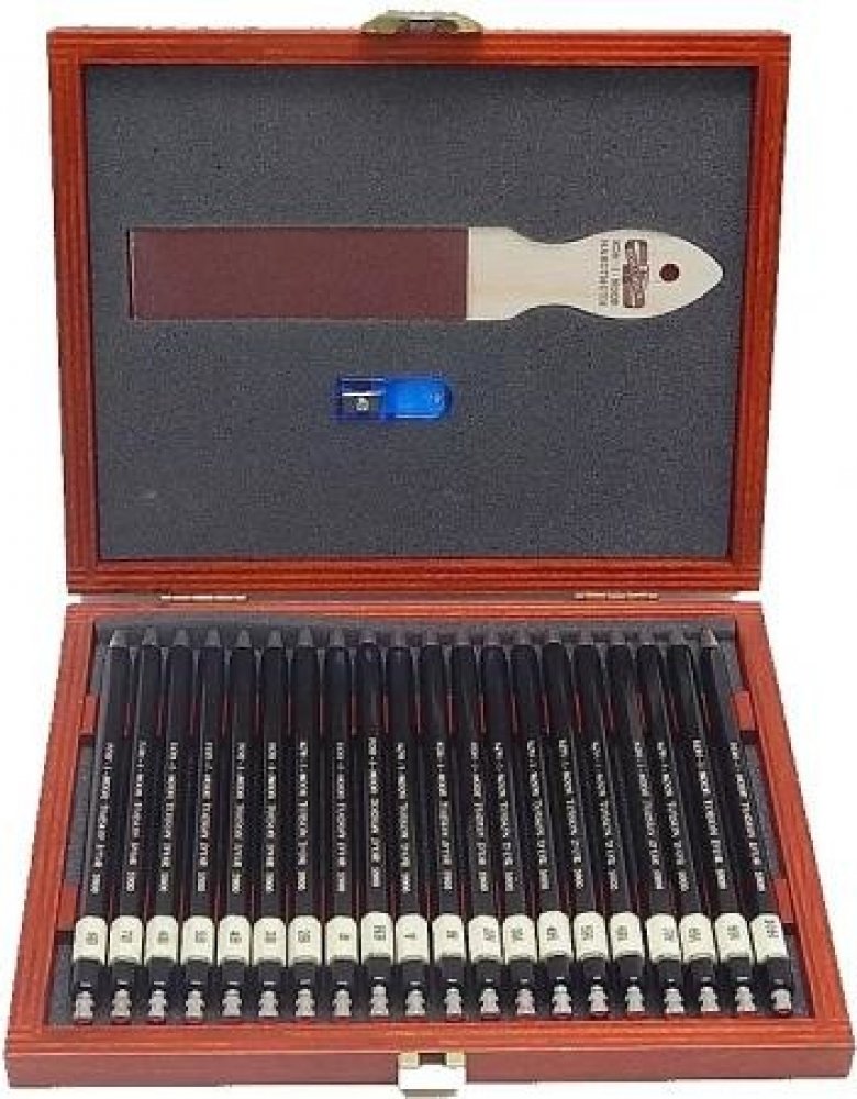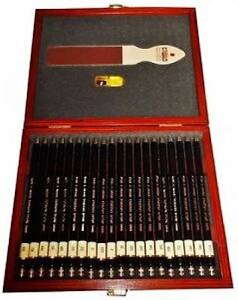 Luxusní sada mechanických tužek KOH-I-NOOR v designu TOISON D´OR v dřevěné kazetě. Tužky jsou s tuhami ve všech dvaceti vyráběných gradacích. Každá tužka je opatřena hrotítkem. Kromě toho kazeta obsahuje brousítka a speciální hrotítko na přesné doostření hrotů tuh. Souprava je vhodná pro technické, umělecké i hobby kreslení a rýsování.