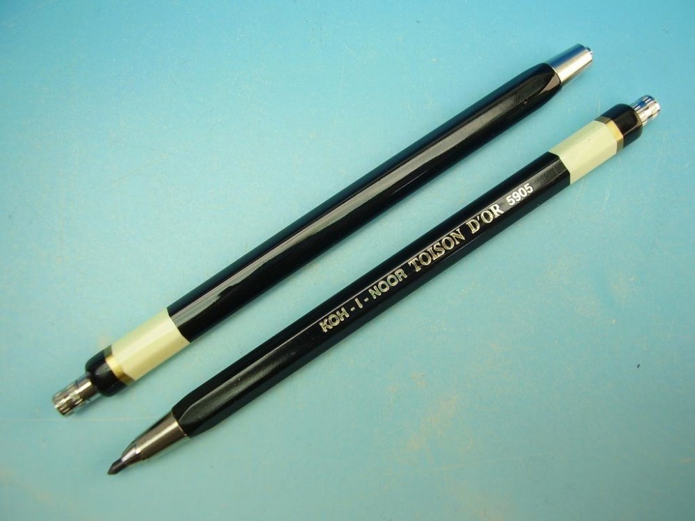 Plášť tužky je šestihranného profilu 0K7,lakovaný černou barvou, na konci bílý pruh.