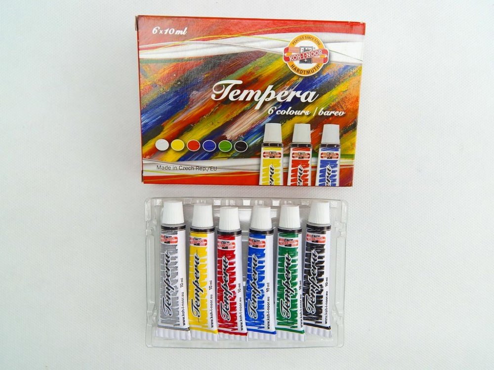 Barvy rychle zasychají a po zaschnutí je lze znovu rozmýt vodou. Temperové barvy vynik...