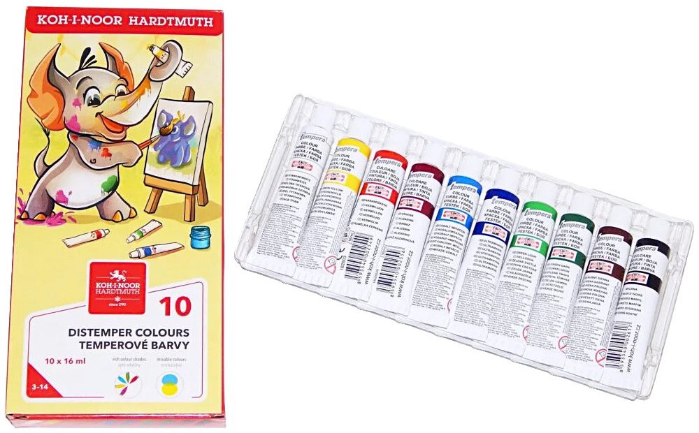 Koh-i-noor barvy temperové v tubě, 16 ml 10 barev, Slon