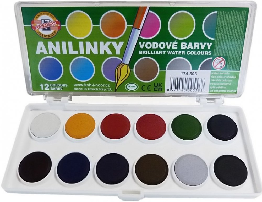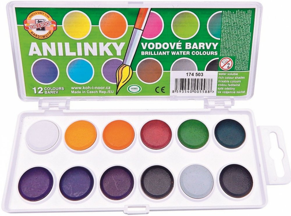 Koh-i-noor Barvy brilantní (anilinky) 12 barev, 22 mm