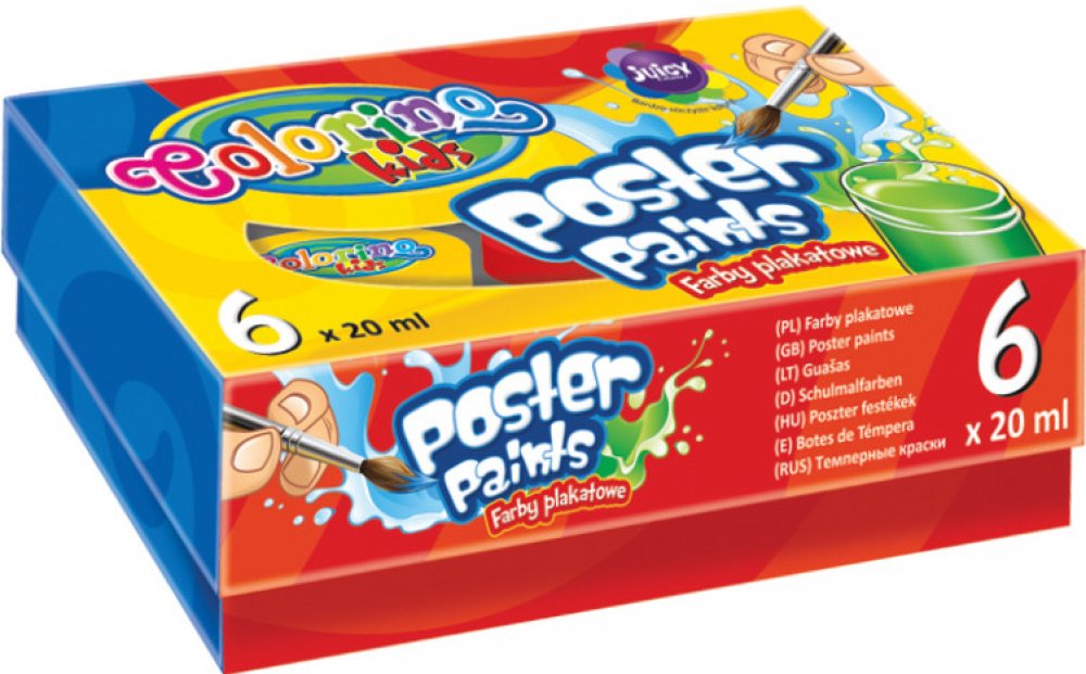 Základní sada temperových barev v praktickém kelímku. Barvy lze snadno míchat mezi sebou, což umožňuje vytvářet nekonečnou paletu nových barevných odstínů.obsah kelímku: 20 ml6 barev: bílá, žlutá, černá, červená, modrá, zelenákrásné a syté barvyvodou ředitelnénetoxickévhodné na: papír, karton, dřevoobsah balení: 6 ks