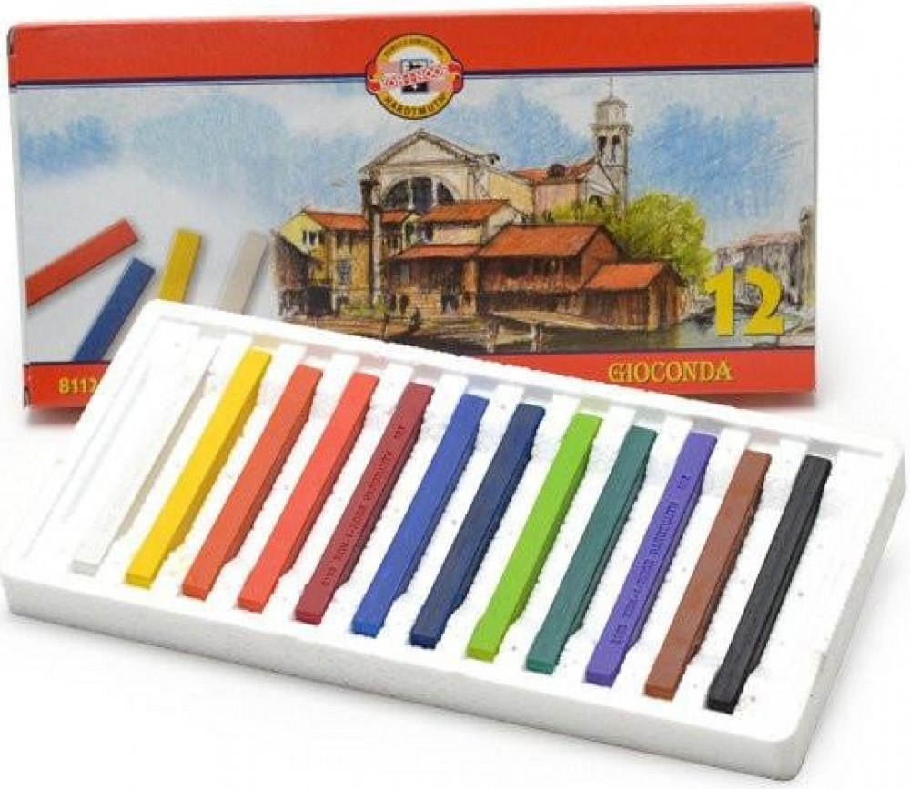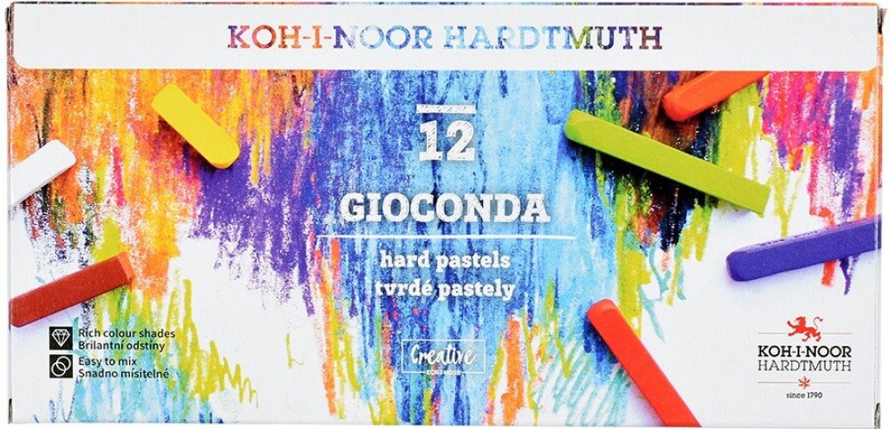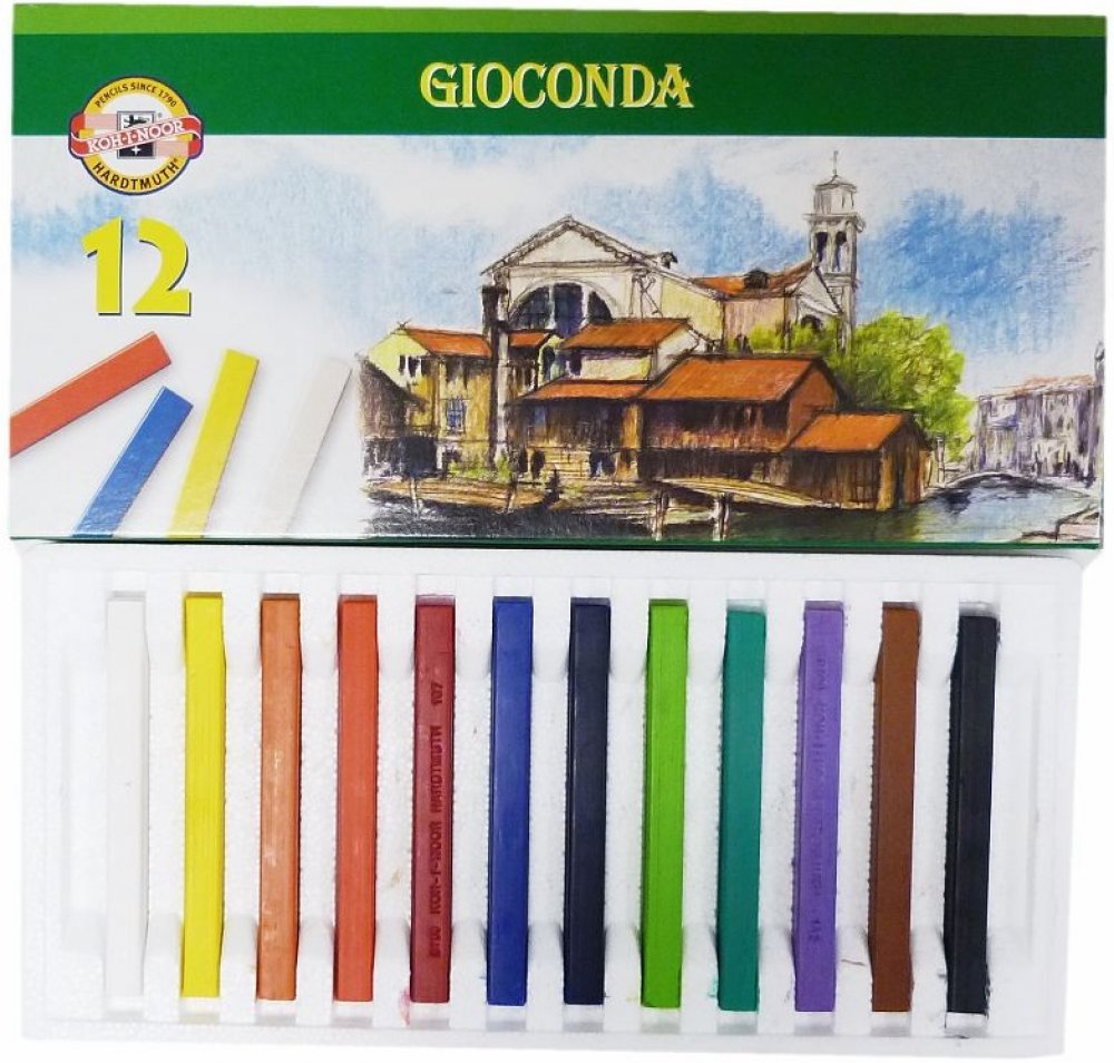 Hranaté tvrdé umělecké pastely KOH-I-NOOR GIOCONDA 8112 - set mají skvělou a nezaměnitelnou vlastnost při stírání na podklad, snadno se nanáší bez nutnosti vynaložit velký tlak na jádro.