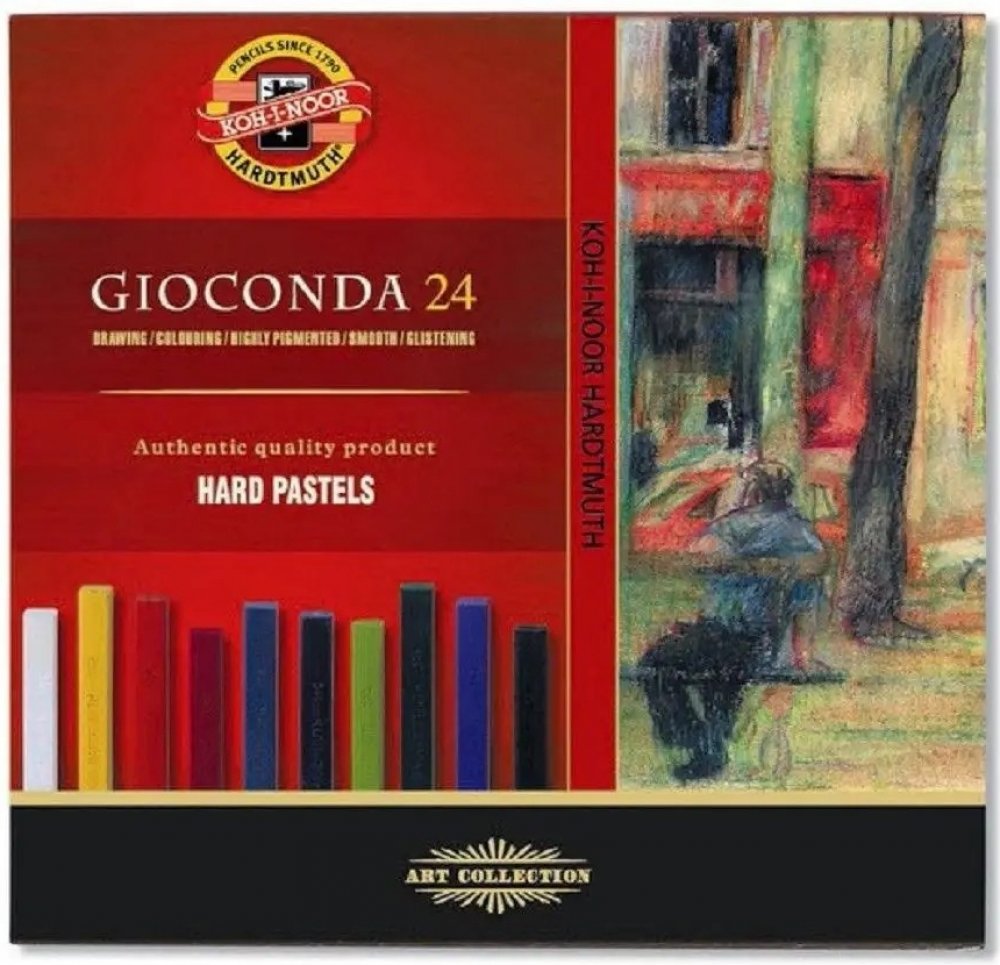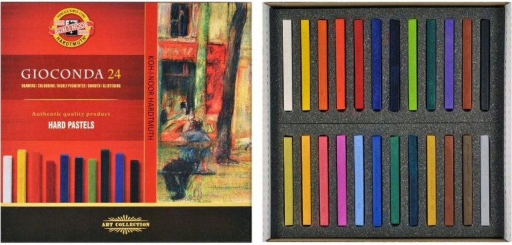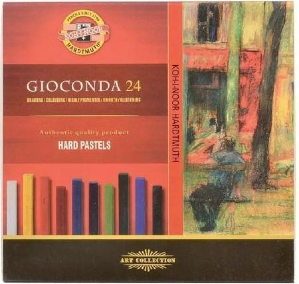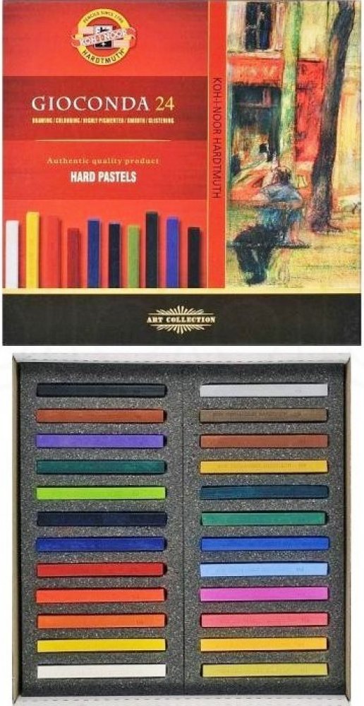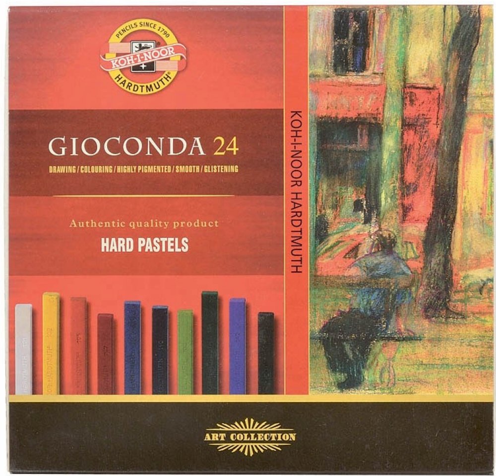 ART. KOH-I-NOOR GIOCONDA 8114 Souprava tvrdých uměleckých pastelů vysoké kvality. Hranaté tvrdé umělecké pastely. Pastel má čtvercový profil o hraně 7 mm a na délku měří 75 mm. Snadno se nanáší bez nutnosti vynaložit velký tlak na jádro. Hranatý tvar umožňuje nejen vykrývání velkých ploch pomocí malby podélnou hranou, ale i drobnou kresbu.