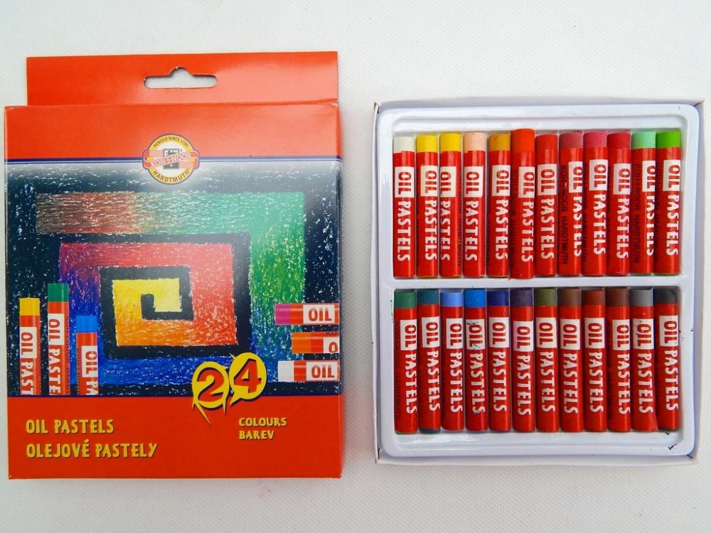 Souprava olejových kříd určených pro školní účely, pro aranžérské a umělecké kreslení. Souprava 24 kusů olejových kříd - průměr cca 8,9 mm, délka 60 mm.