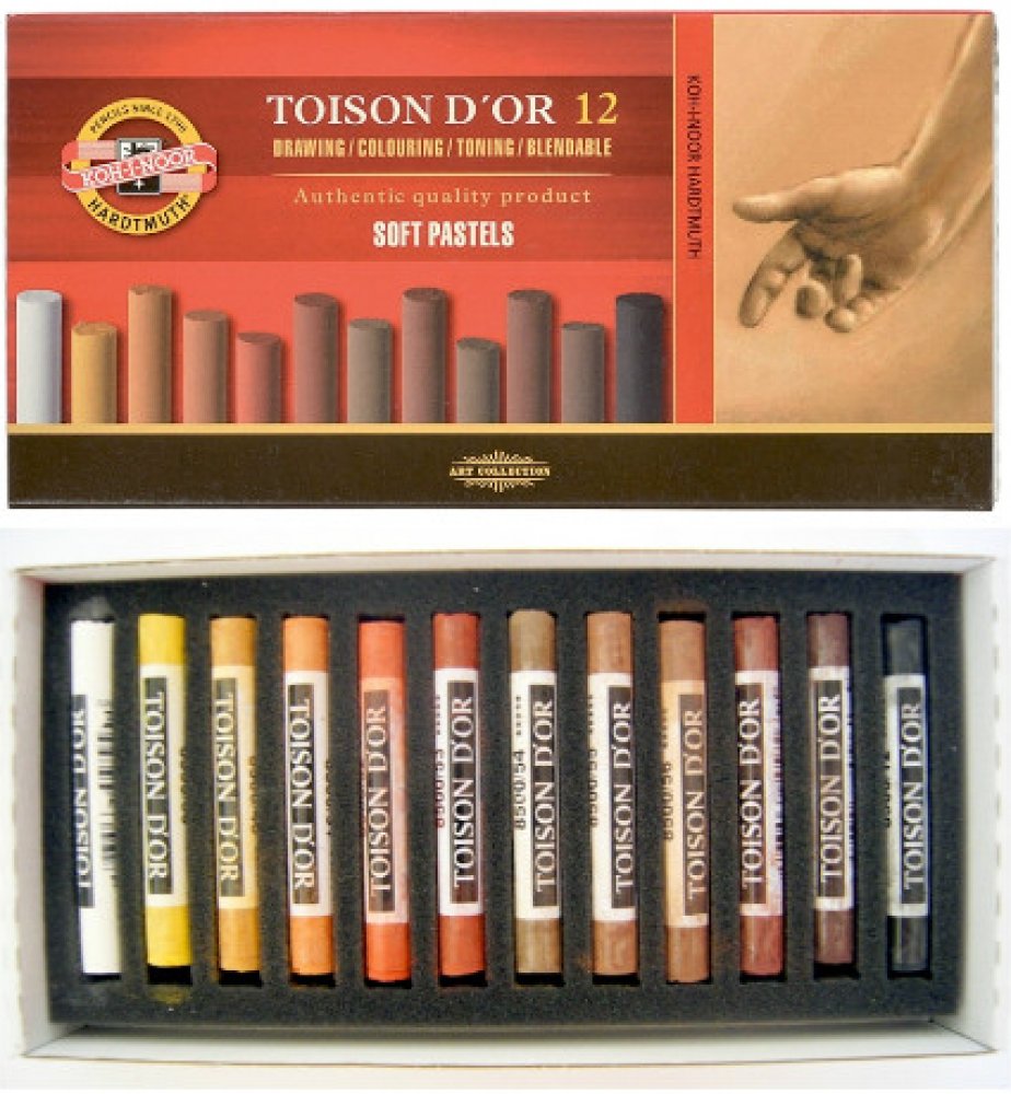 Souprava prašných uměleckých suchých kříd Koh-i-noor. Balení obsahuje 12 ks pastelů. Během kreslení se křídy dají velmi lehce rozmazávat. Po dokončení je nutné na kresbu použít fixativ. Nevhodné pro děti do 3 let.