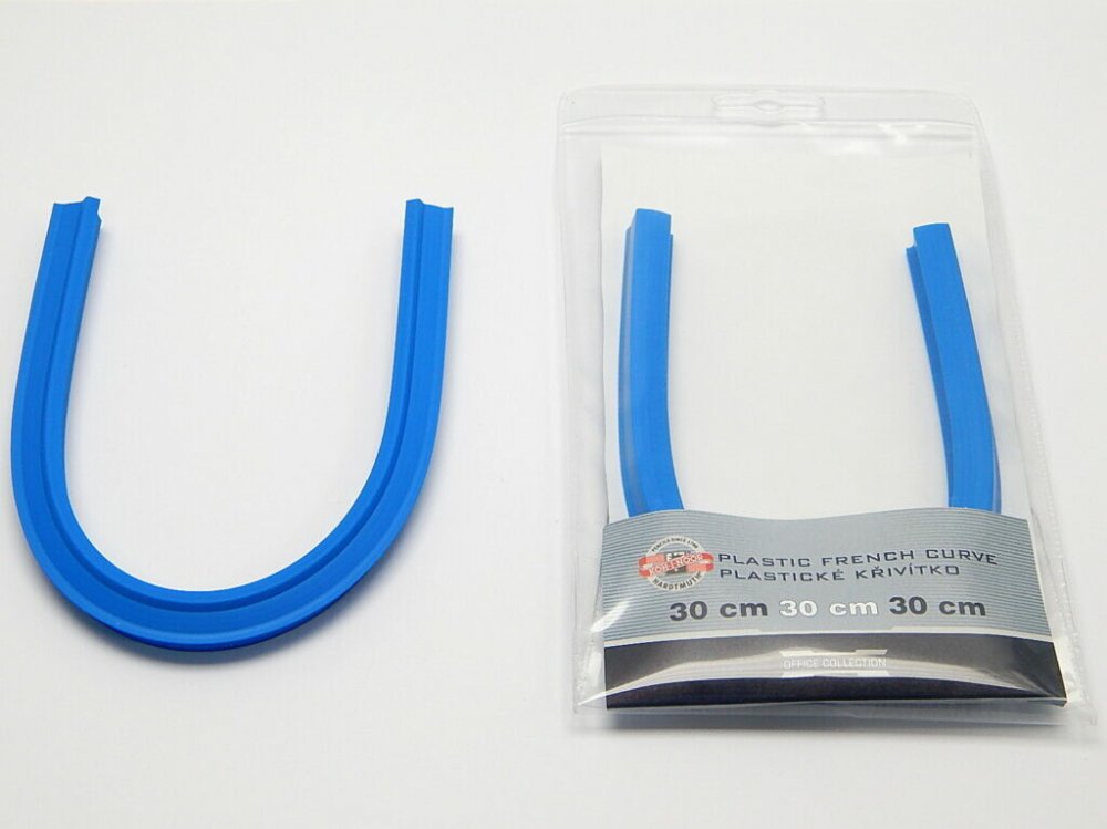 Plastické křivítko délky 30 cm Plastické křivítko délky 30 cm je vyrobeno z plastového profilu čtvercového průřezu, který je vyplněn olověným prutem a planžetami. Profil je na jedné straně opatřen protaženou hranou, která umožňuje obkreslování tuší a druhá strana hranou pro obkreslování ohrocenou tužkou. Plastické křivítko je určeno pro přenášení, obkreslování a kreslení rádiusů, křivek a složených tvarů. Uplatnění má hlavně při hobby činnostech, ale používá se i v kanceláři a ve škole. Zabaleno je do celotransparentního polypropylenového pouzdra s papírovou vložkou a eurozávěsem.