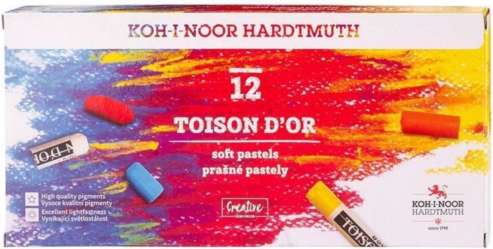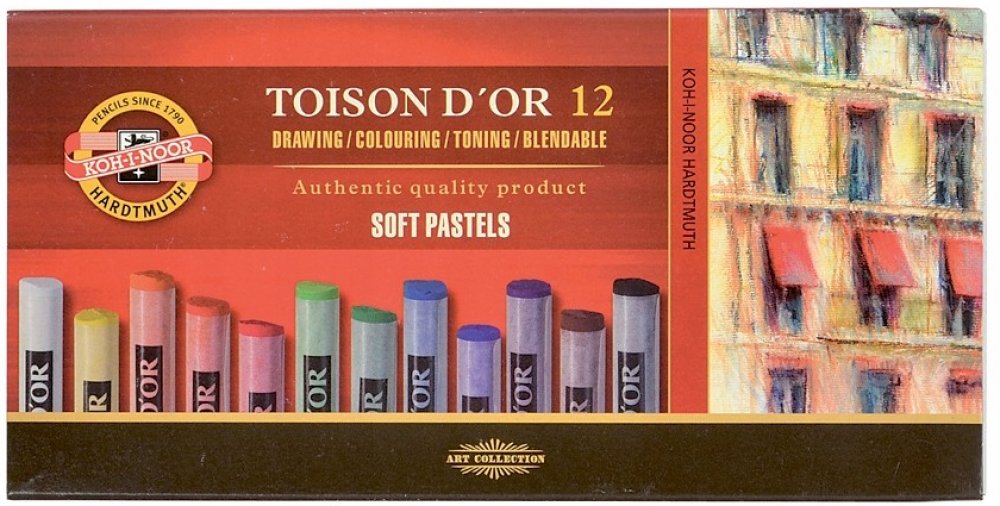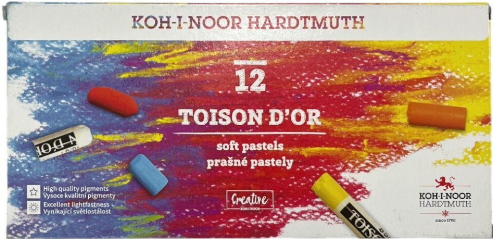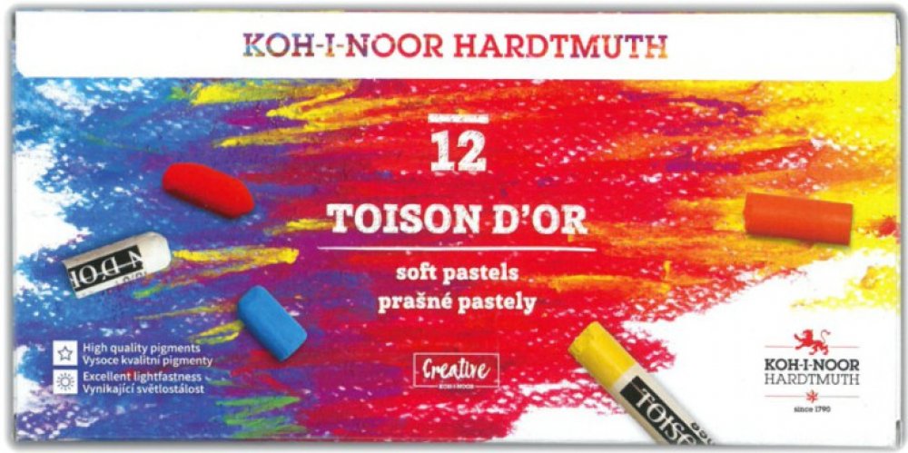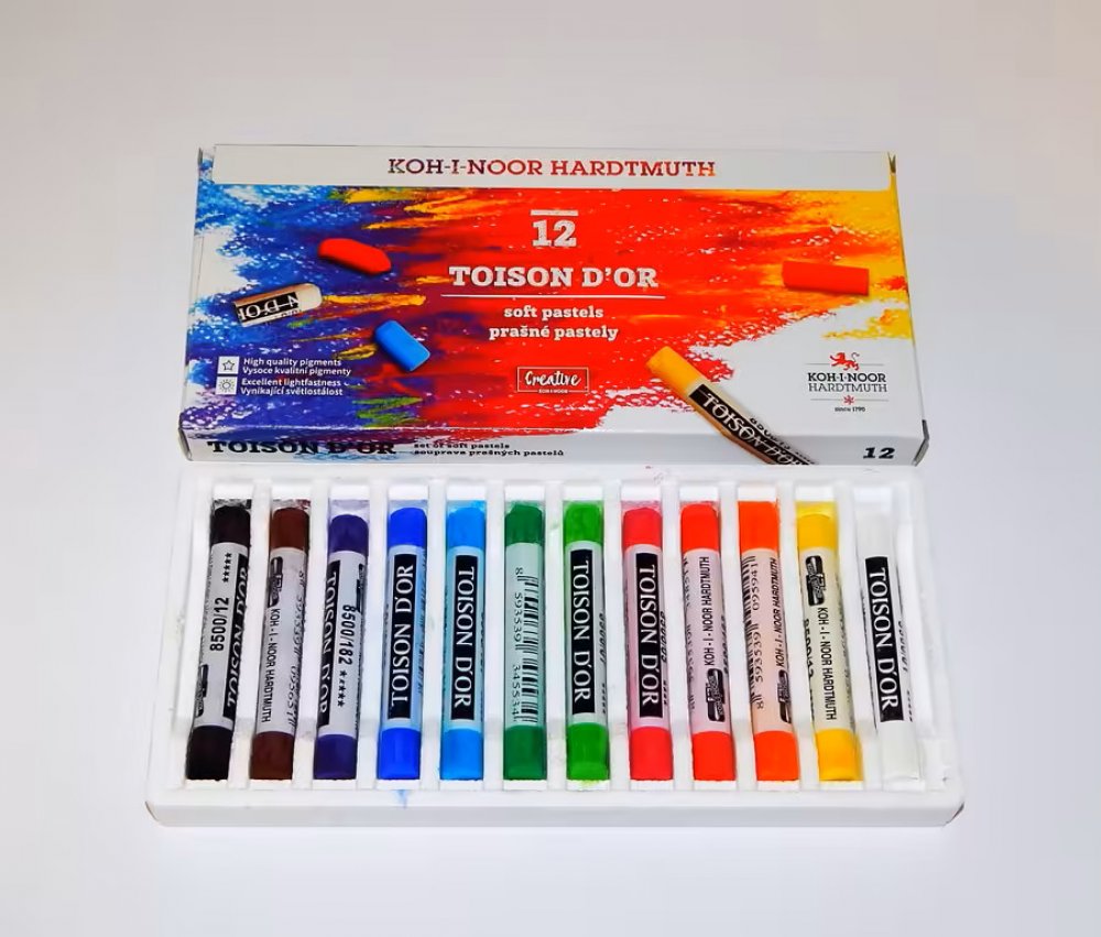 Souprava 12 ks uměleckých prašných kříd v papírové krabičce s polyuretanovou vložkou.