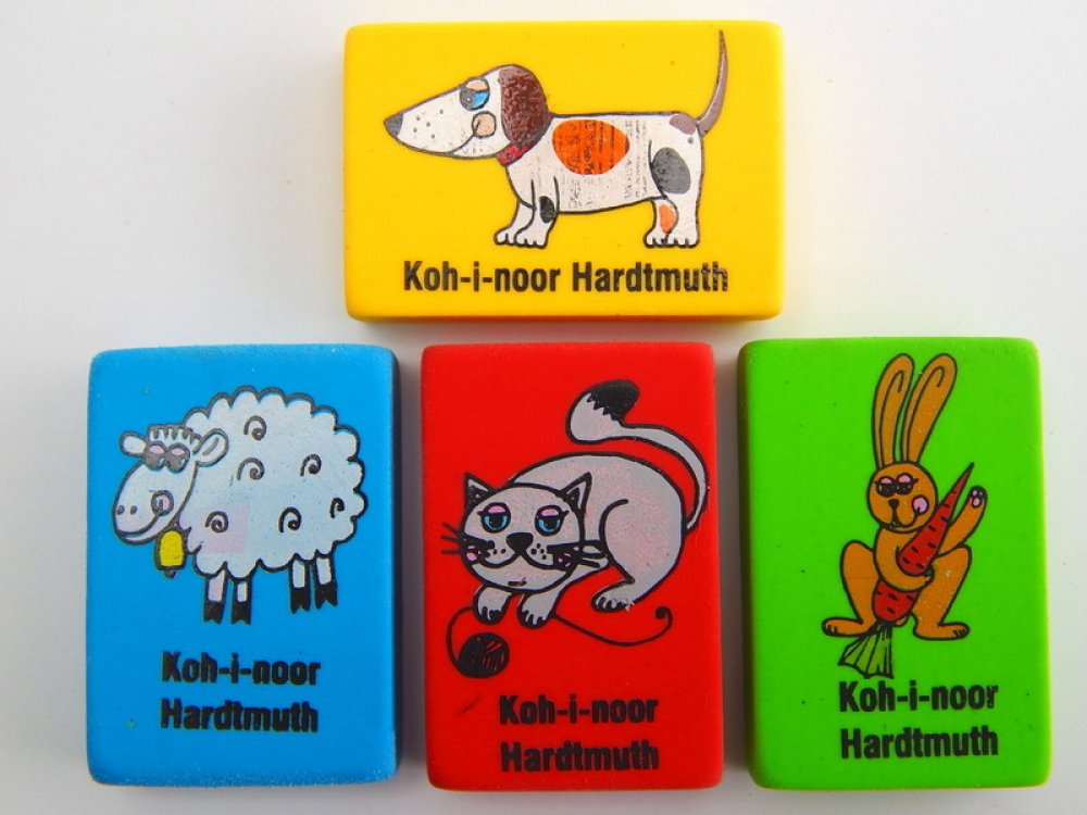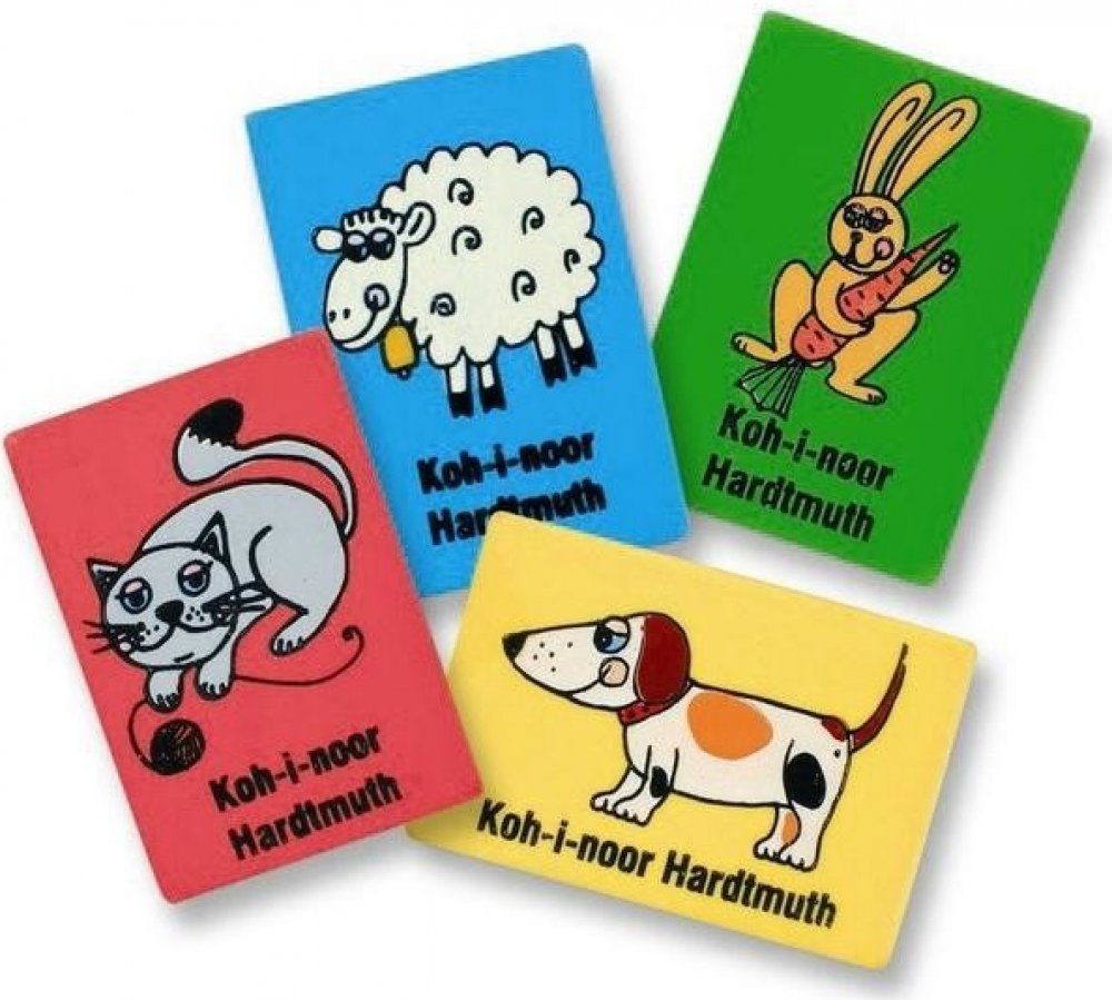 Pryž s motivy zvířátek Netvárná plastová pryž odstraňuje stopy grafitových tužek. Rozměr 45mm x 31mm x 12mm.