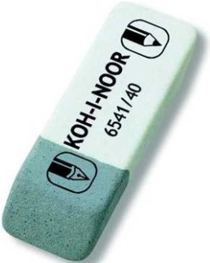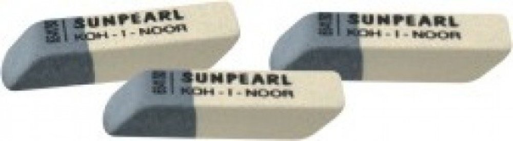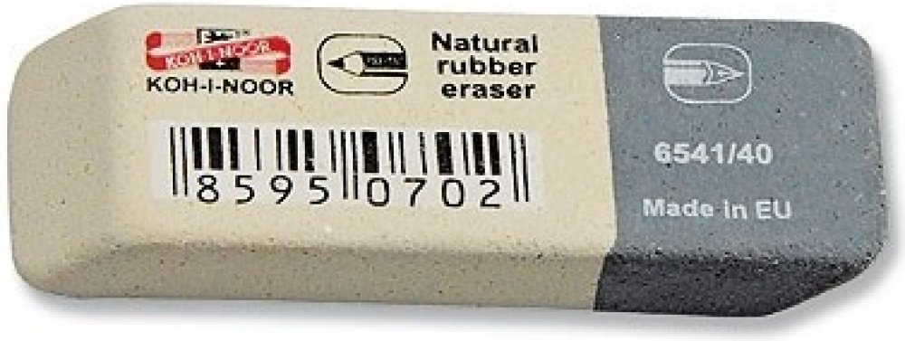 Stěrací pryž s měkkou částí pro vymazávání grafitových čar střední tvrdosti a tvrdou částí pro inkoust, tuš a strojopis.