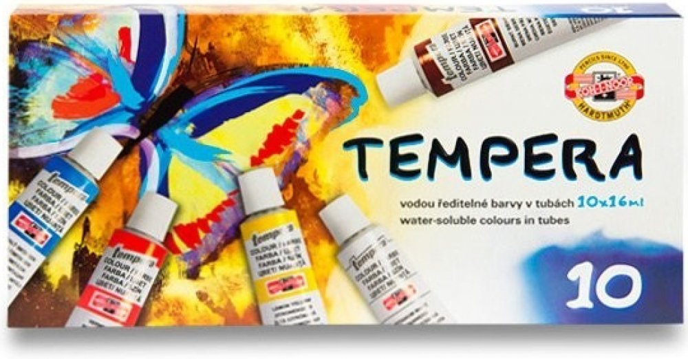 Barvy jsou ředitelné vodou v tubách velikosti 10 cm a obsahu 16 ml. Český výrobek. Barvy jsou určené především pro výuku výtvarné výchovy ve školách. Jsou vysoce kvalitní, husté, vzájemně se mísitelné, vodou ředitelné, jsou bezpečné a spolehlivě vypratelné. Barvy velmi rychle zasychají a po zaschnutí je lze znovu rozmýt vodou. Základem jsou jemně utřené pigmenty rozmíchané do emulze vhodného oleje...