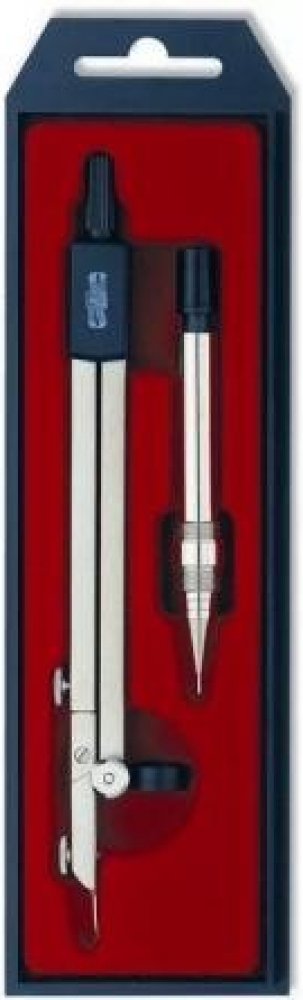 soupravy kružidel 09004 Souprava kružidla kovového a automatické tužky v obalu z tvrdého černého plastu s průhledným víkem a eurozávěsem pro techniky. Kružidlo kovové s teleskopem je určené k rysování kružnic až do průměru 540 mm automatickou tužkou nebo trubičkovými pery. Automatická mikrotužky má pr. tuhy 0,5 mm. Kovové díly jsou niklované. Kruzidloí a tužka v obalu uloženy do tvarové vložky, př...