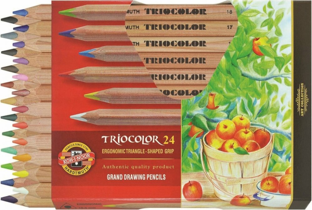 Kvalitní trojhranné silné pastelky firmy Koh-i-noor v přírodním dřevu z kolekce Umění.