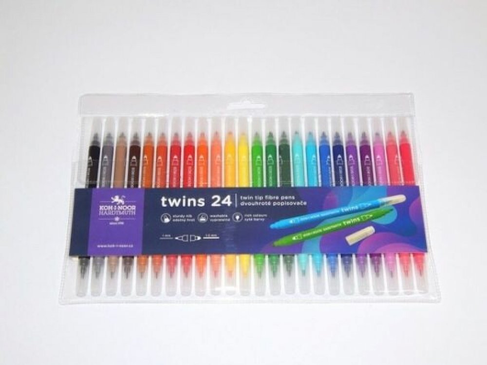 Školní dvojité popisovače se dvěma různými průměry hrotů a bezpečnostními chránítky,které umožňuje dýchání i v případě spolknutí. Jsou plněné pestrými vypratelnými inkousty ve 12 odstínech a vyrobeny z materiálů zajišťující odolnost proti vyschnutí minimálně 3 roky.Oba hroty jsou odolné proti zatlačení.Umožňují psát a malovat stopou šířky 1 mm, s hrotem průměru 2 mm a 2 – 3 mm s kuželovým hrotem průměru 3,7mm,délka 300 – 600 m podle použitého hrotu.Všechny použité materiály splňují požadavky normy EN – 71.Baleny jsou do souprav po 6 a 12 ks v PP pouzdrech. Vyrobeno v EU.